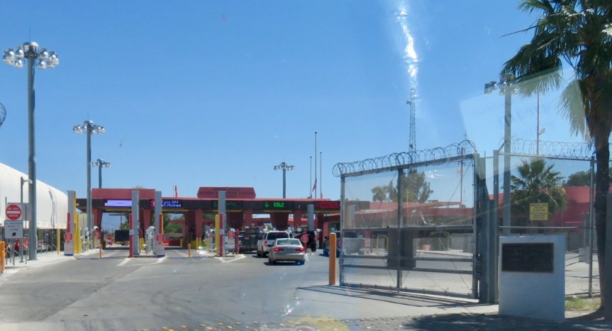 When I reached the border and was nearing the overhead structure on the Mexico side, there were numerous cars parked in the center divider area, so I pulled in and asked a machine gun toting youth in desert camo where to turn in my tourist visa. A woman standing around waiting for cars from the US side pointed to the small glass windowed office. I went in and there was no one at the counter. A woman was working in an adjoining office. I asked if this was where to cancel the visa and she said yes and walked out to the office and banged on the window to get the attention of a man joking around with his friends outside. He came right in and cleared me from the computer and put a stamp in my passport then sent me on my way. Again, no line. Not even one other person. I’m loving Lukeville. I pulled up to the US side of the border crossing and I was the third car in line. Three cars! Not three hours like San Ysidro, three cars. A few minutes later I was at the gate.