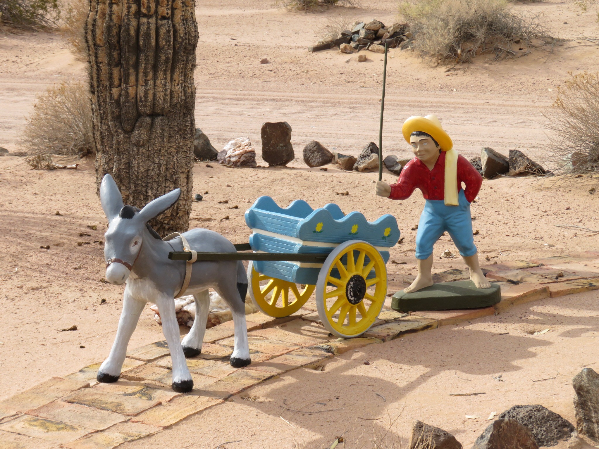 Pushed on for Gila Bend and some gringo style civilization, a Love’s truck stop and a McDonalds. Hate to admit it, but I had a cheeseburger. Don’t tell PJ, but Cali and Koda had cheeseburgers too. Gassed up, $97.50 and that at Arizona prices, 38 gallons with the gauge still showing a quarter. Set my sights on Yuma but the Monster energy drink I downed in Mexico wore off and when the wind kicked up after Gila Bend and I was white knuckling it trying to stay in my lane, I gave up and exited at Dateville. There was an RV park right there but it advertised full timers for $150.00 a month, I wasn’t sure it was a good idea.
