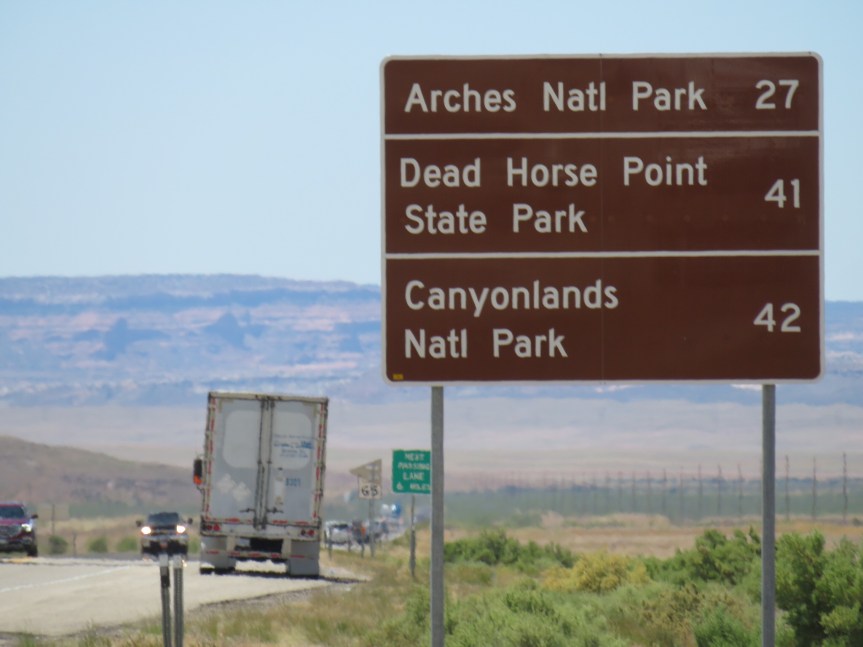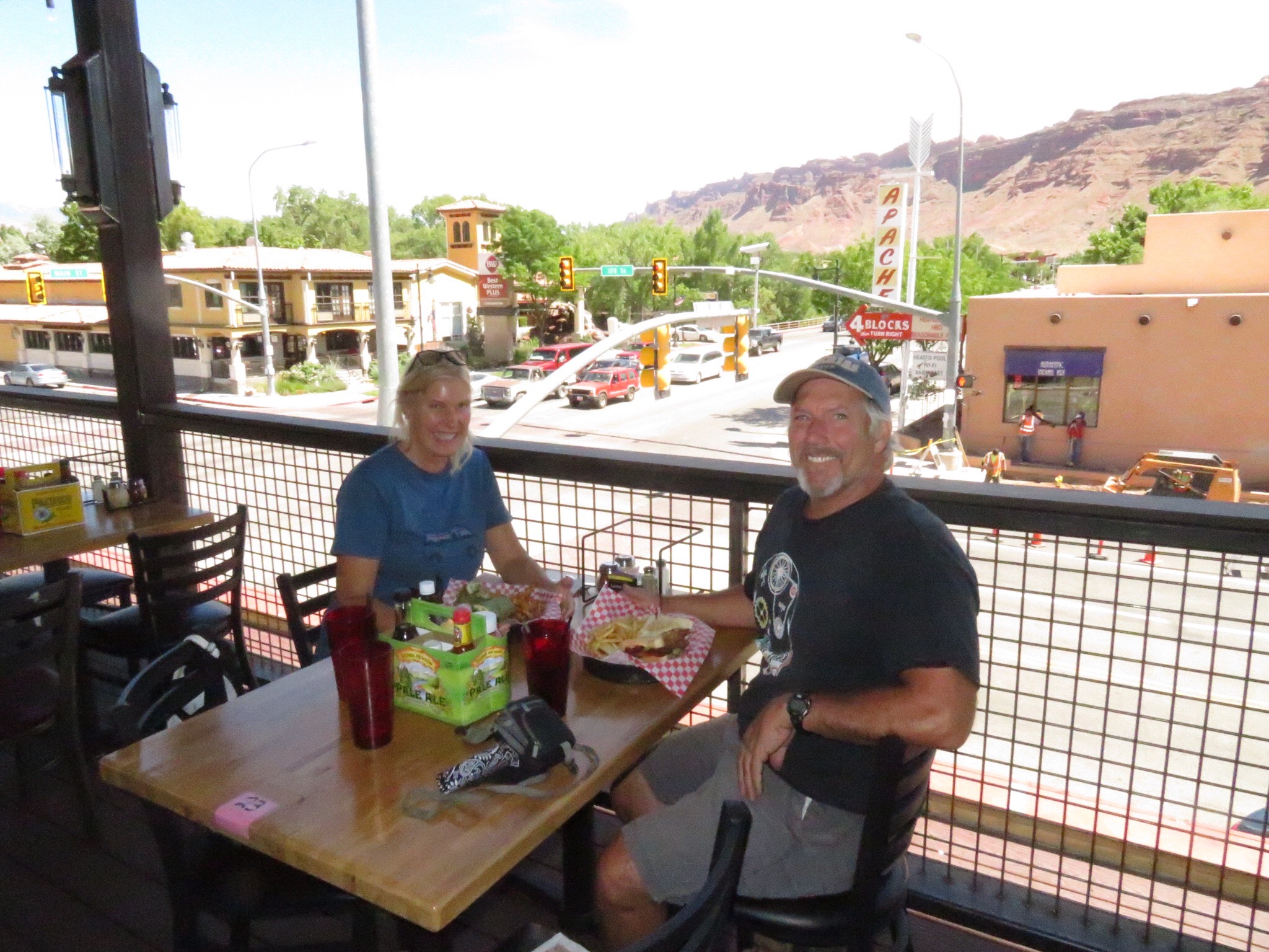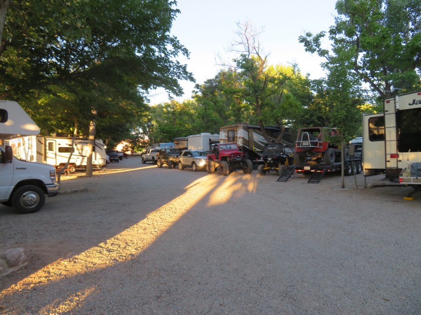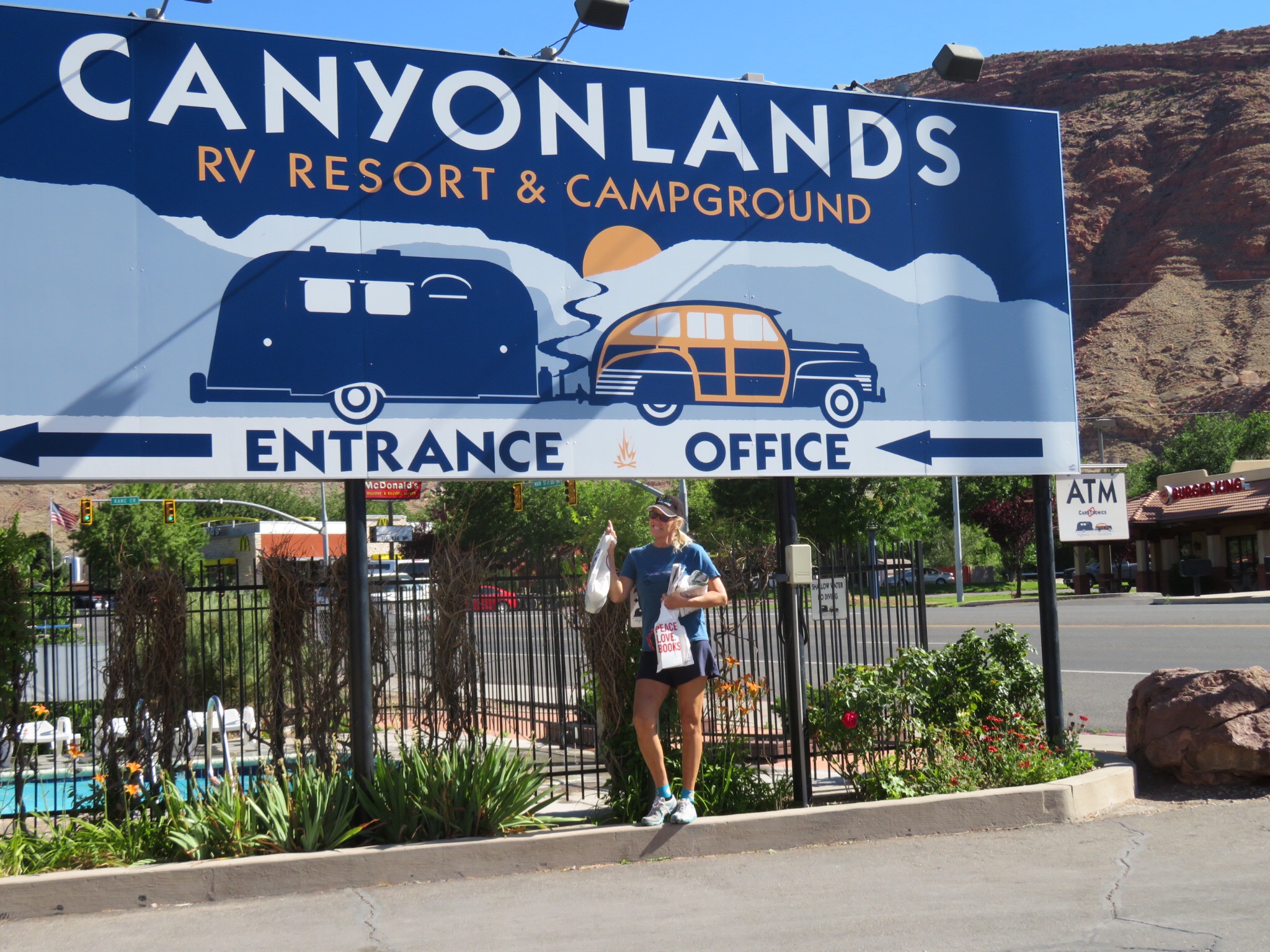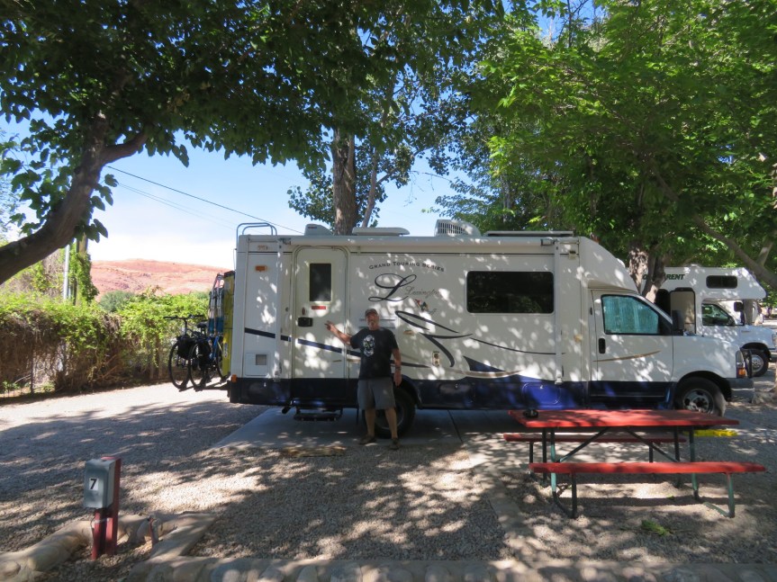 It wasn’t too much farther that we were taking the off ramp to Moab to see about camping at Arches National Park. Busy road with lots of traffic coming and going. The campground at the park is closed this year so that they can remodel and fix it up. We sat in the lot of some adventure tour company and plotted our next move. We really want to check this area out if only for a day so we decided to check the RV parks in town.