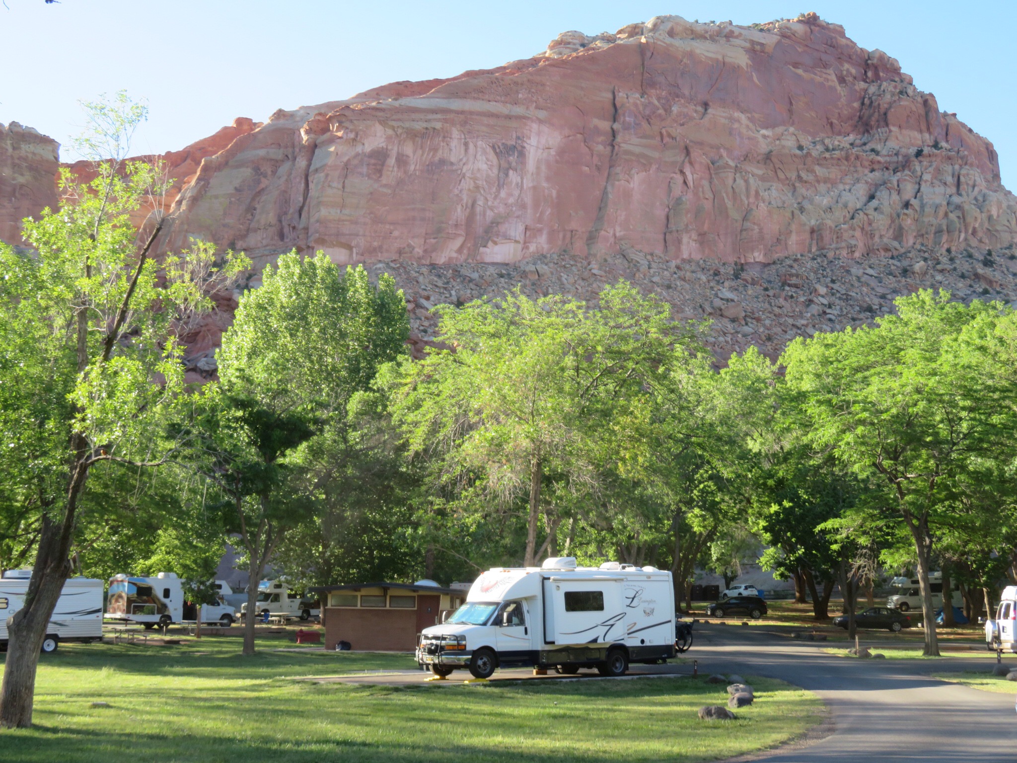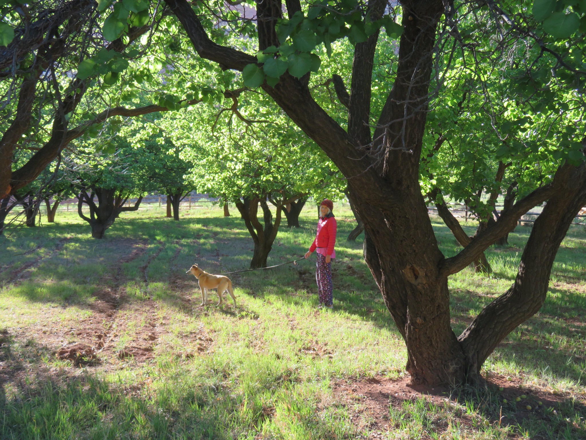We loitered a while in Capitol Reef this morning in no hurry to leave this serene oasis. We walked the dogs down by the peach groves along the river and had a look around loop C.