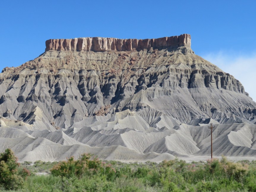 Watered the batteries, checked the tires then pulled out of camp. The road out was easy and pleasant. A few small inclines to navigate but overall a nice drive. A little more desert like but still with some occasional rock castles and escarpments in the distance. Soon we arrived at the main highway and turned towards Denver.