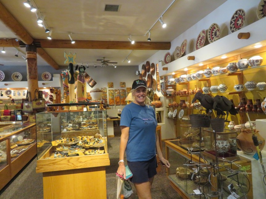 Then we visited a bunch of shops until I couldn’t take it any more although I have to admit most of the stuff we bought was for me. A t-shirt and a new pair of flip flops to replace the Reefs that blew out on me in Mexico. We shuffled back to the Canyonlands and had long needed showers then did domestic stuff. Laundry, feed the dogs, etc. As usual, RV park internet sucks, but my Verizon LTE is getting a good signal so I am able to catch up on posting on the blog. PJ was talking with the couple in the classic Honey RV that we met at Capitol Reef. They are here in the park closer to the front. We hung out in the RV running the fan for white noise and reading the books we bought at Back of Beyond Books this afternoon.