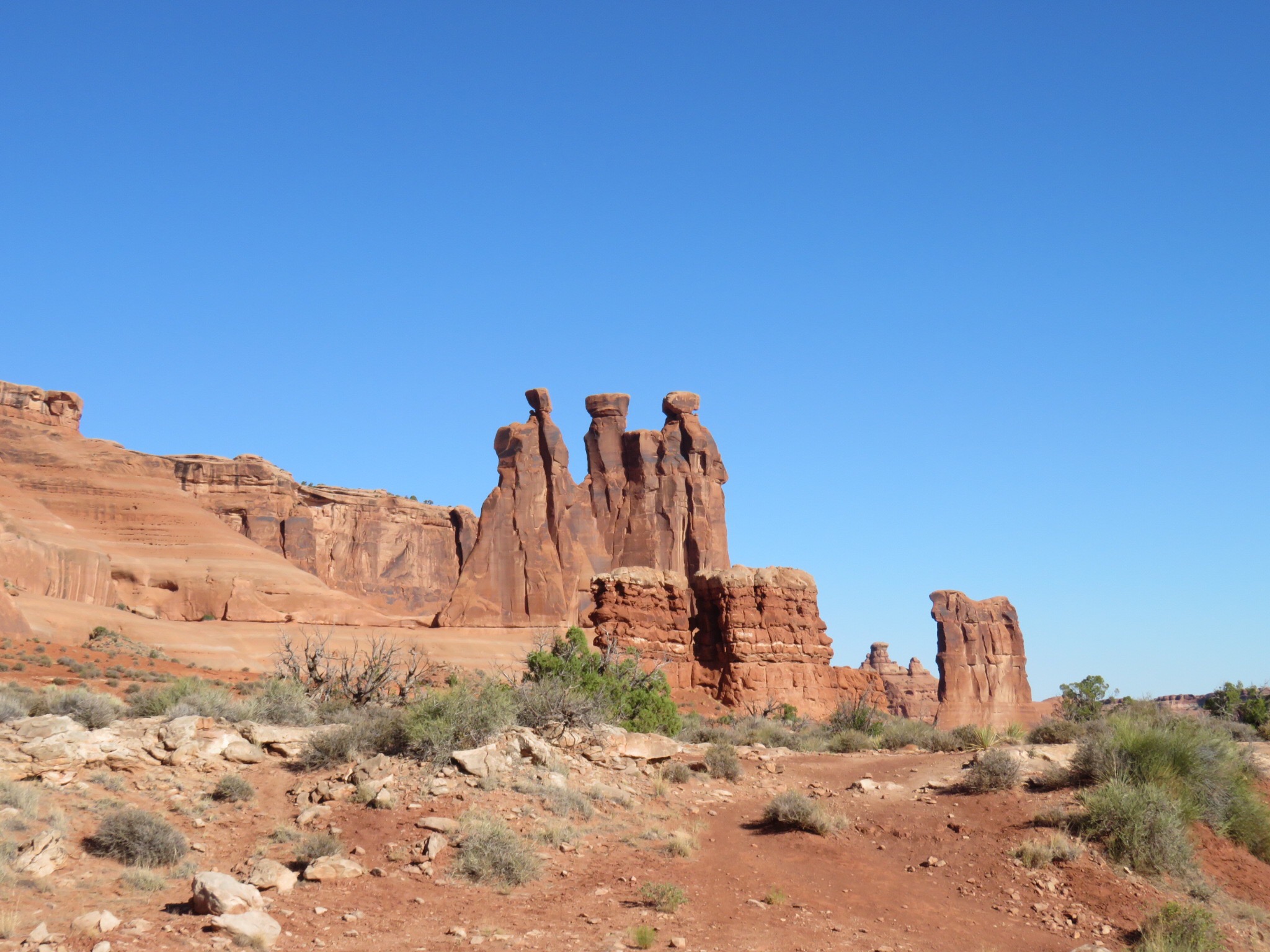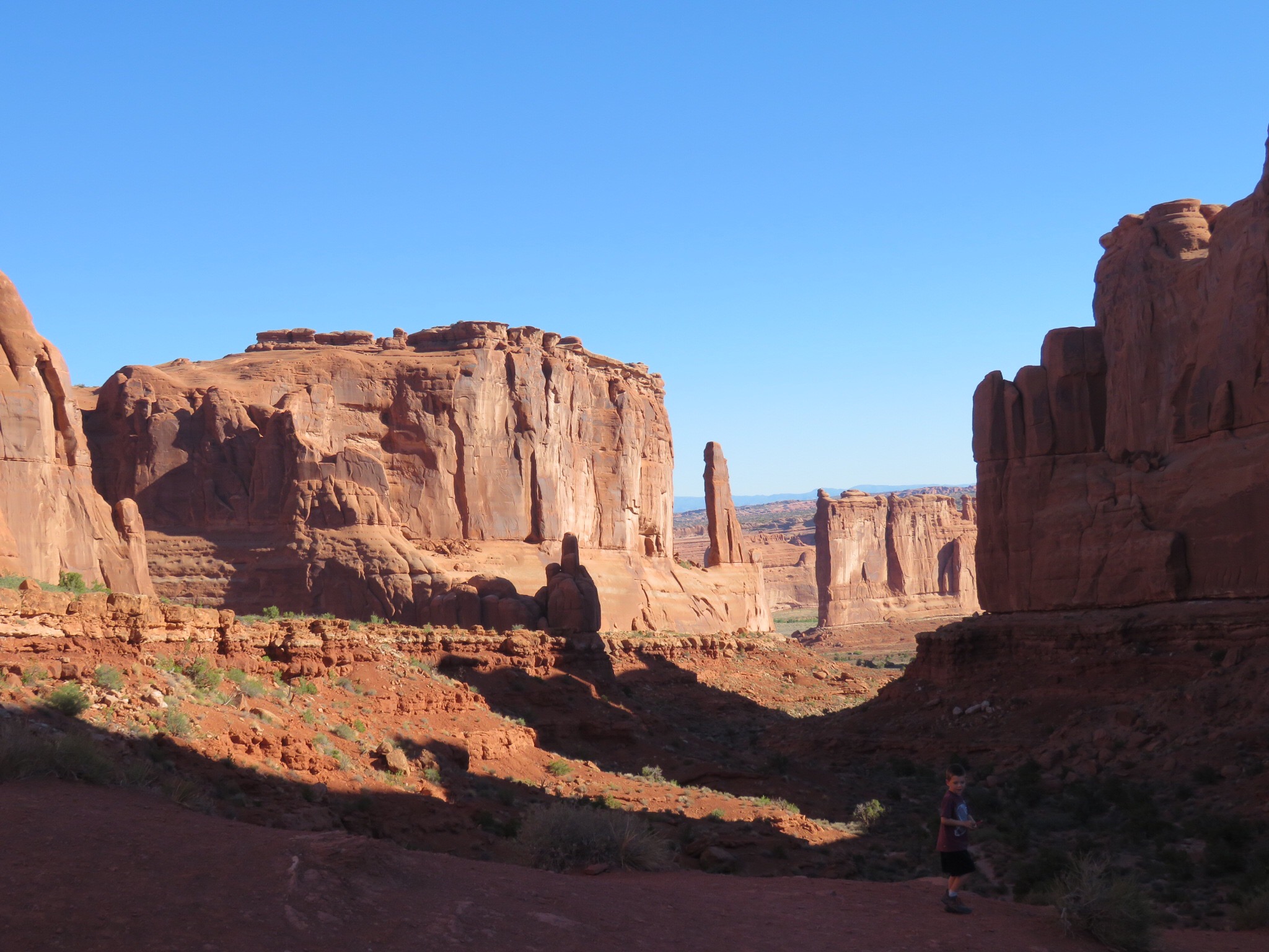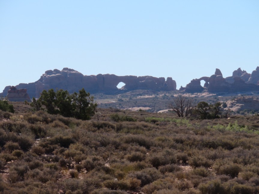 We got up relatively early and started closing shop. We took the dogs over by the creek to let them off leash. There was some tension between us over small things but we seemed to recover o.k. Hit the bank on the way out of town and we were at the entrance to Arches National Park a few minutes after 8:00.