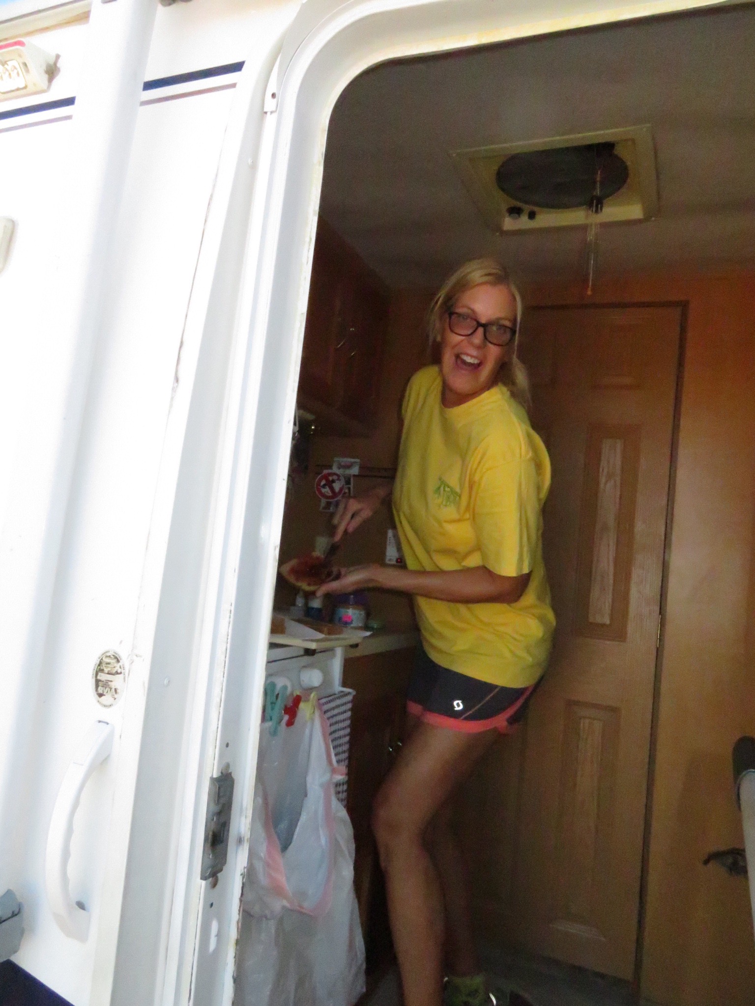 We took our time traversing the park. We drove up to a less popular overlook to get out of the mainstream of the crowd and made breakfast. Cali’s got Kokopeli’s revenge and barely made it out the door. Not a good sign.