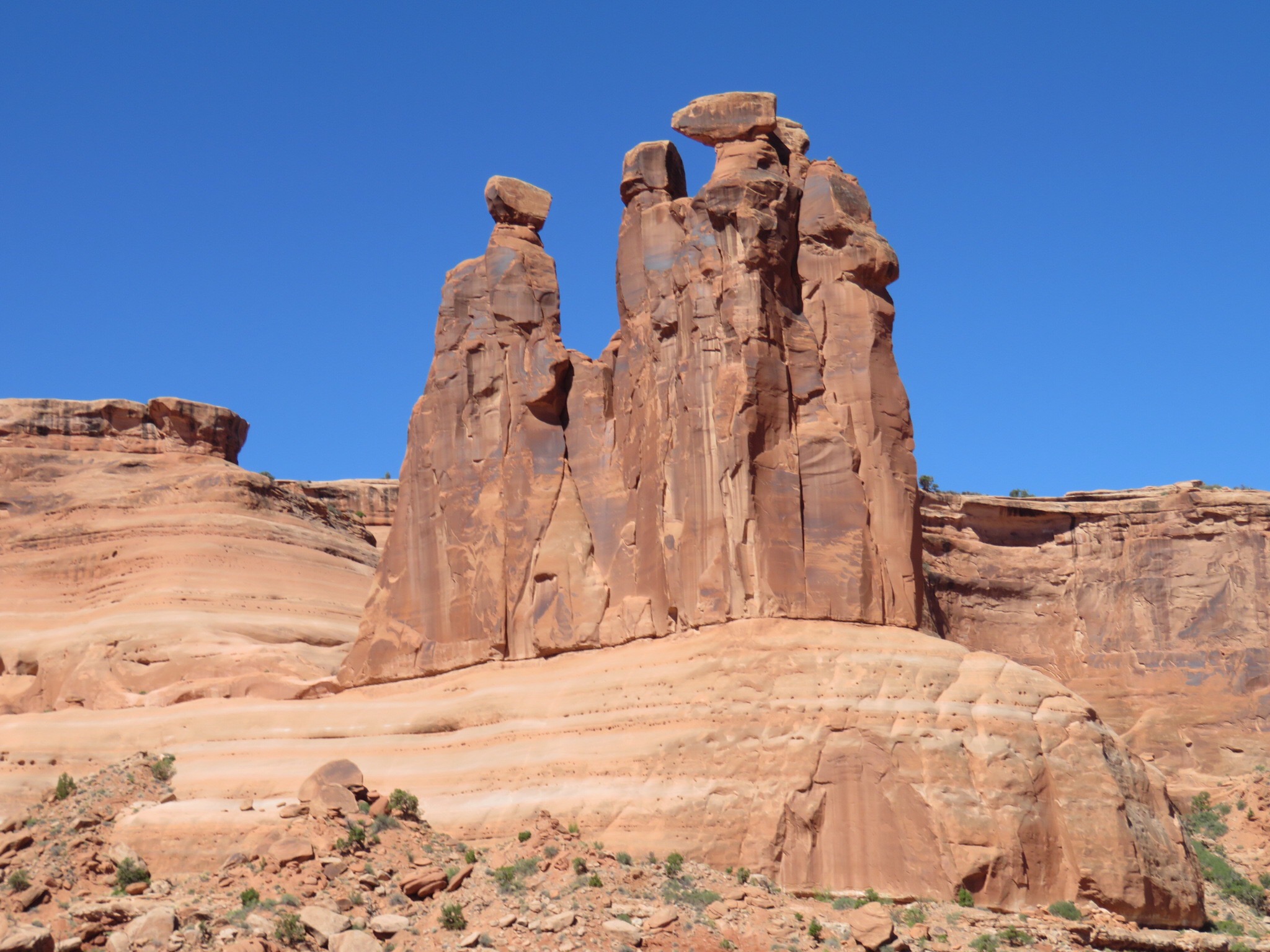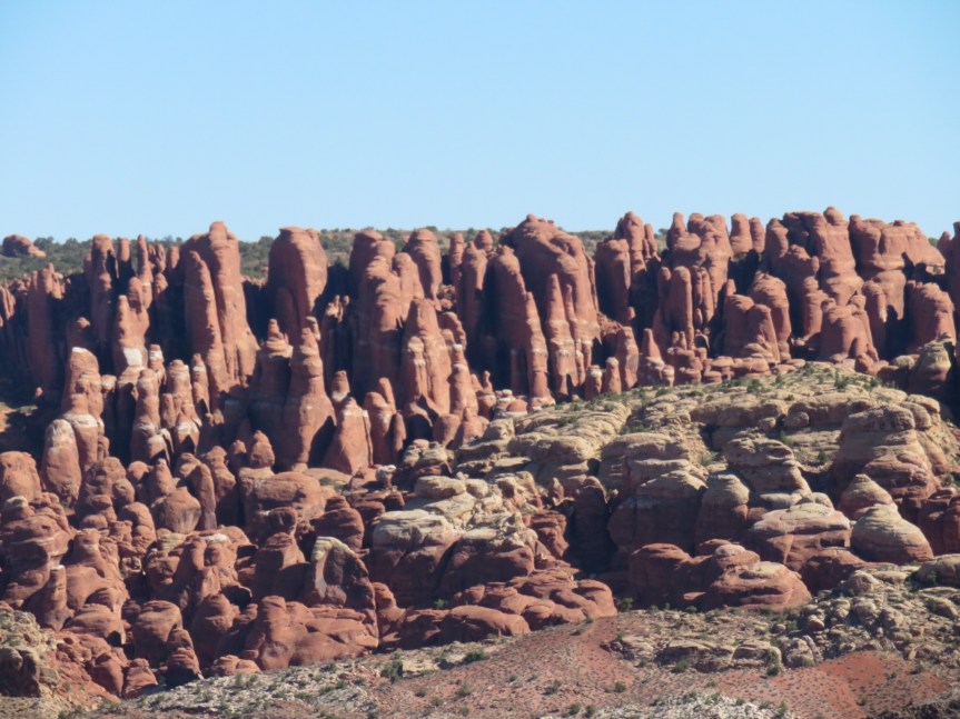 What can you say about the panoramic beauty of this place. Rock sculptures created over millennia of all shapes and forms. We stopped at the first parking area and wandered around with fifty of our closest friends. An international coalition of arch viewers.