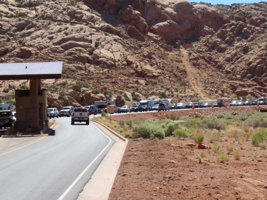 We continued on to the delicate arch. The lot was full. The oversized vehicles only lot was full of small cars and sedans leaving us no place to park. Probably not a good idea to leave Cali closed up inside anyway.