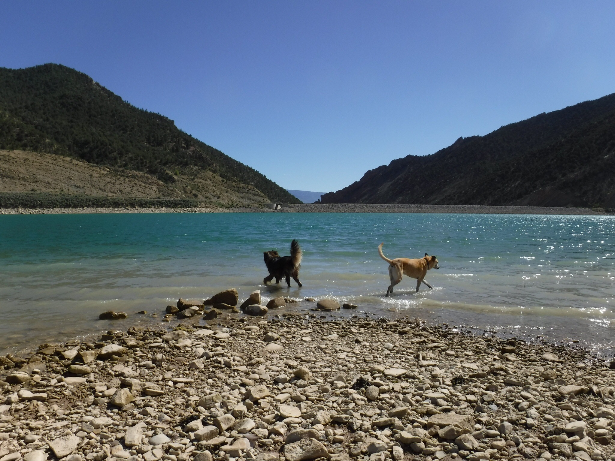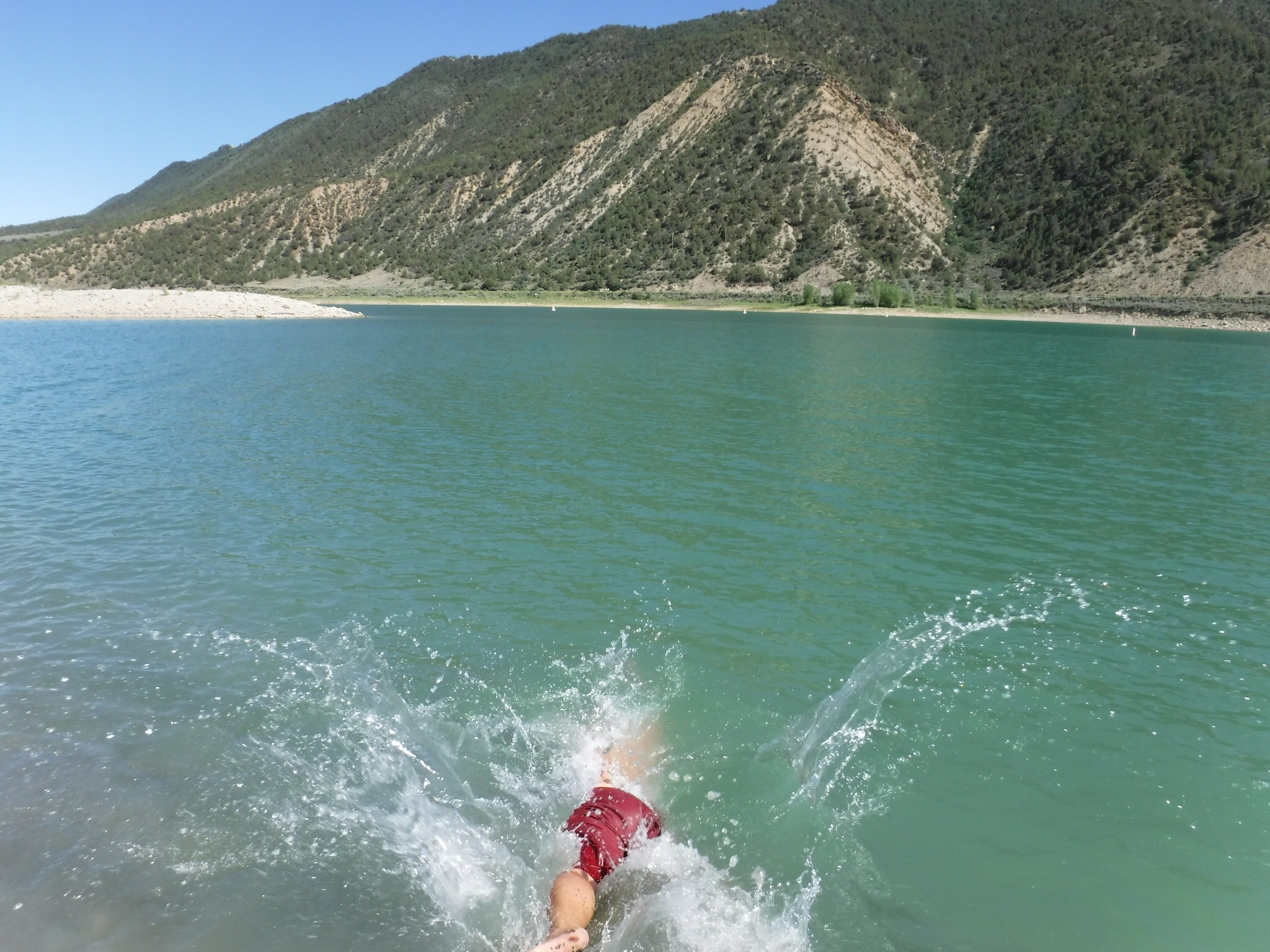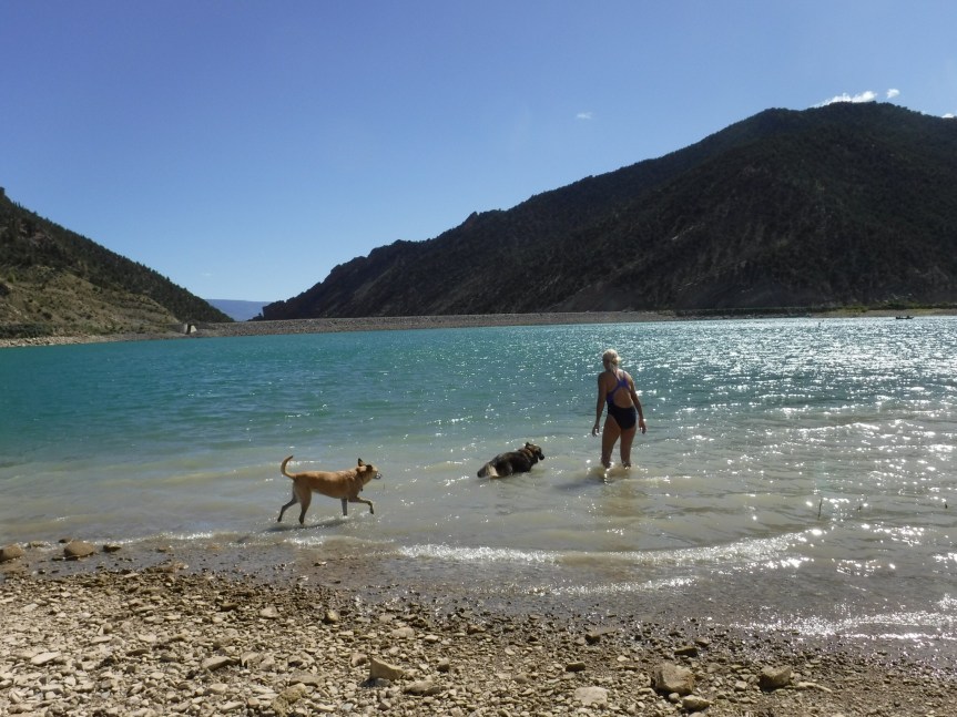 We arrived at Rifle Gap State Park around 3:00 and were still able to get a spot right on the lake. We set up, still a little out of sync. A swim in the cold water seemed to ease the tension and we sat on the bank and rested in the shade.