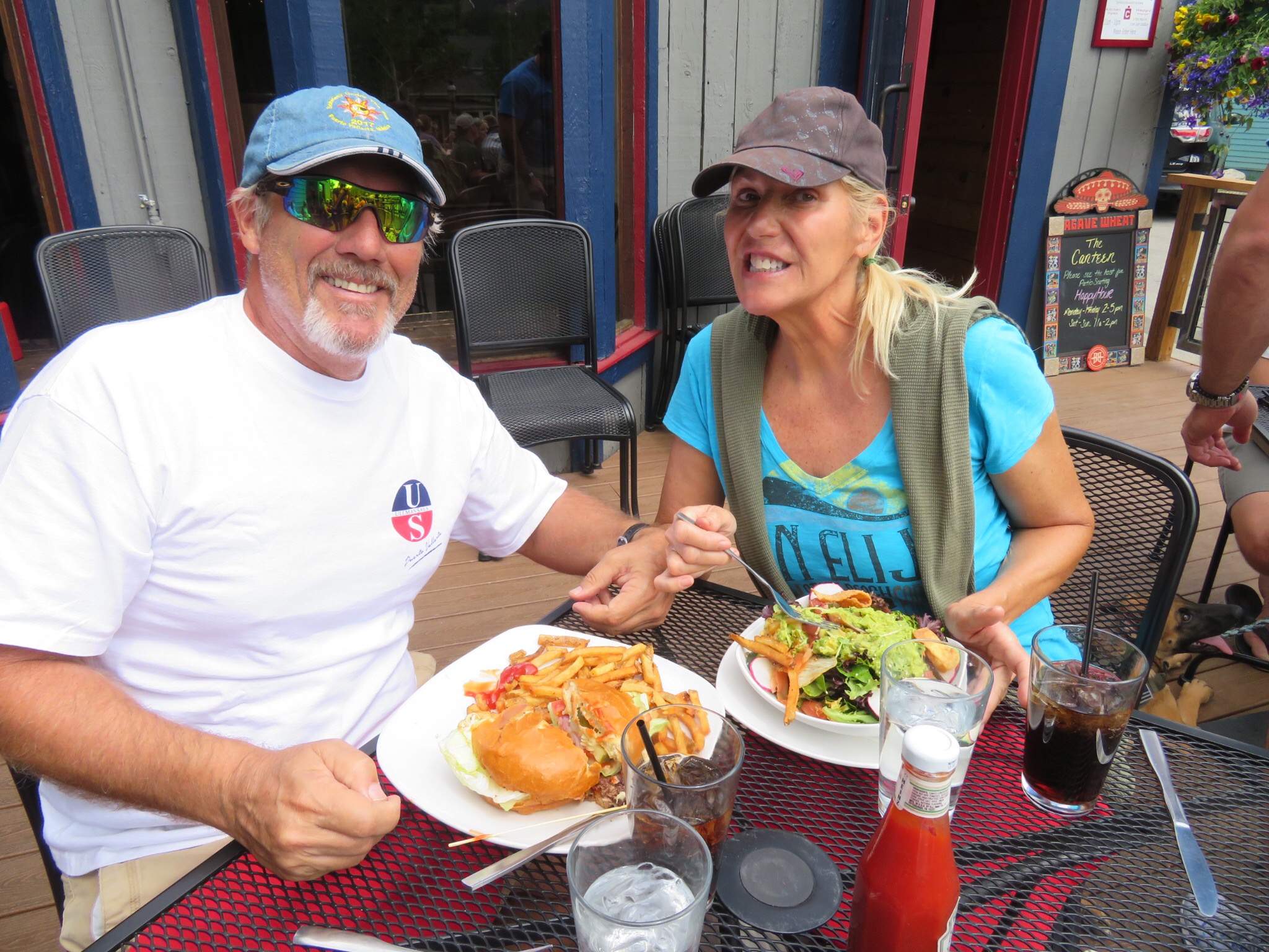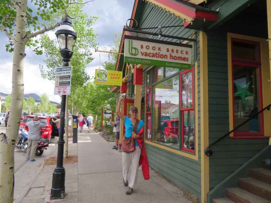 The end of the line leaves you downtown where we set off to find some lunch. I was told that the Canteen Restaurant has the best burgers in Breckenridge, so we made our way over there and ordered one up. PJ picked out a salad and we split an order of fries. The guys at the next table had a puppy with them and we struck up a conversation and one of them offered to take our picture. The scene on the patio was lively and everyone seemed to be in vacation mode. Our waitress was excellent and the burger lived up to its reputation. PJ loved her Asian salad as well. Good food and positive vibes, the Canteen gets two thumbs up.