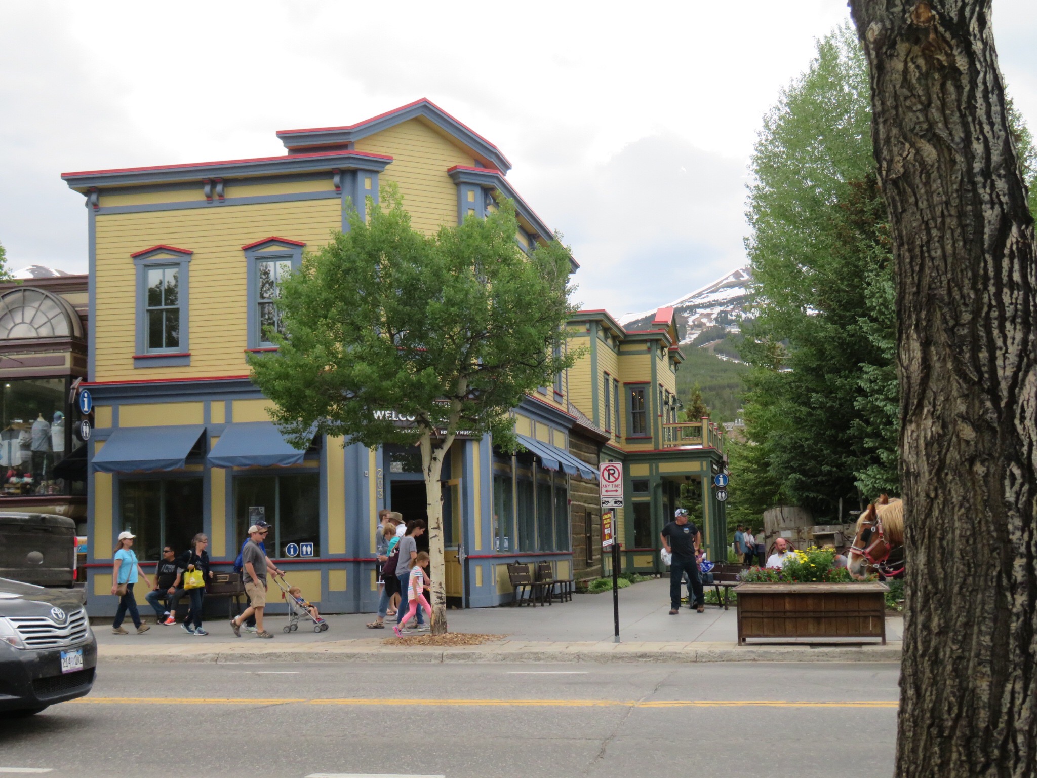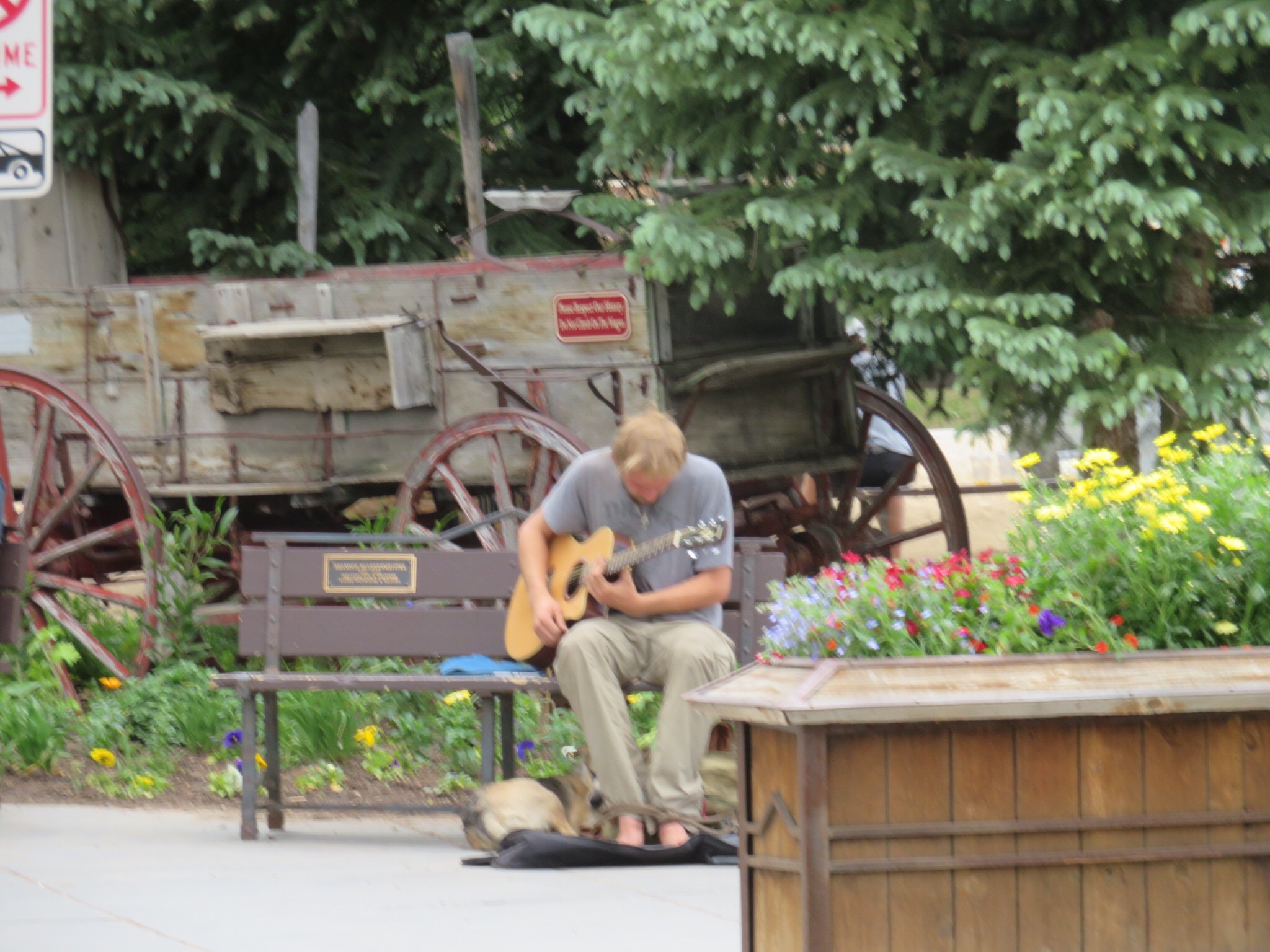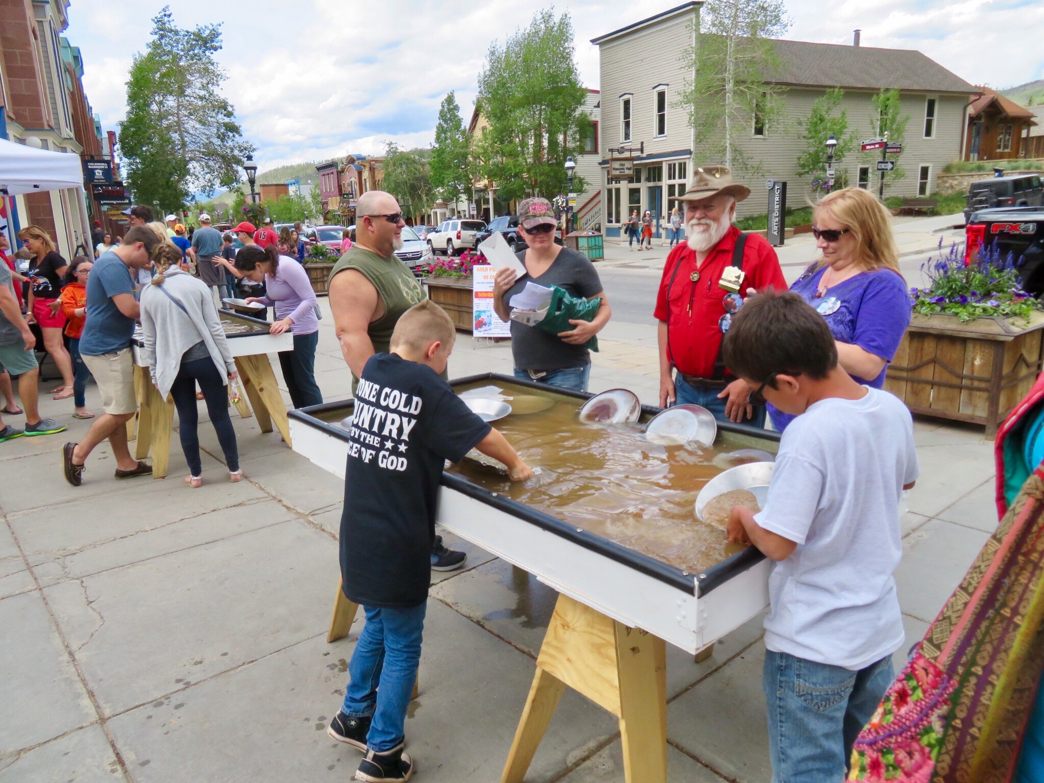 We walked around on Main St. going into stores and checking out the weekend influx of tourists. I staked out a bench across from the main plaza and took photos and watched people while PJ continued browsing in the shops. A busker was busting out tunes on a guitar and the gold miners had set up a bunch of tables with sand and water for the tourists to pan for gold. They had a big crowd gathered and business was looking good.
