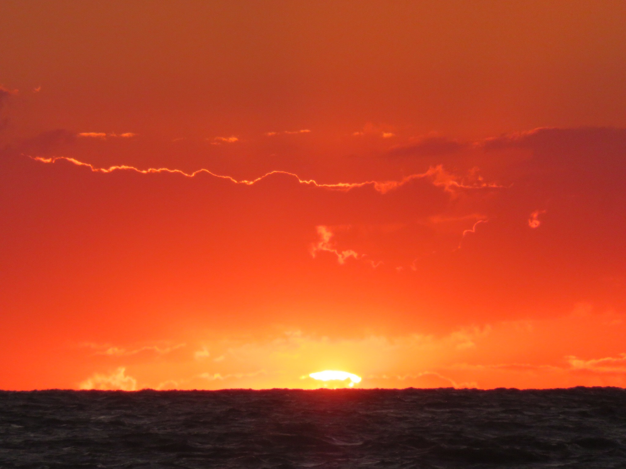 PJ went out to watch the sunset and have a few minutes to herself. Beautiful evening. The lake is like a sea. When we were driving up on the bluff, it looked like a drive down the coast on a flat day. We were trying to relax before bed when some joker in the campground started blowing off fireworks getting our dogs all spooked and shaky and the neighbors little dog was sent into fits of barking. We ran the fan and cranked a surf video in the blu-ray to cover the noise.