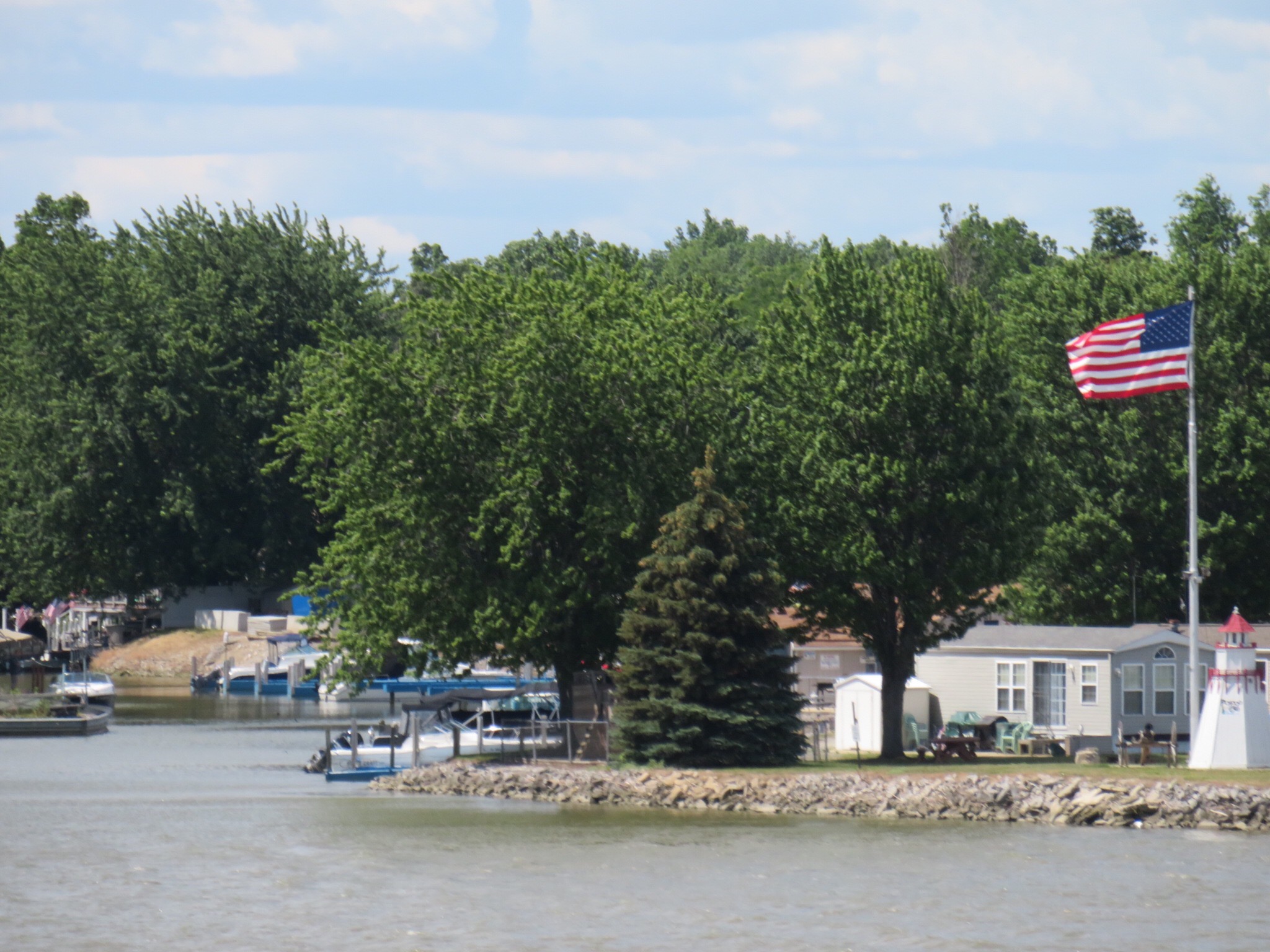 Maumee was a nice place to rest and take it easy. We ate our breakfast at the picnic table facing into the woods behind the camp. We were packed up and out the door by 10:30. A nice bonus that Maumee offers is having park owned sewer hoses at the dump station. Ours got to stay securely housed below and we just lifted theirs out of its rack, used it, rinsed it and hung it up. I’m sure they do it to save time when they have the big back ups on Sundays and holidays, but it’s a nice touch.