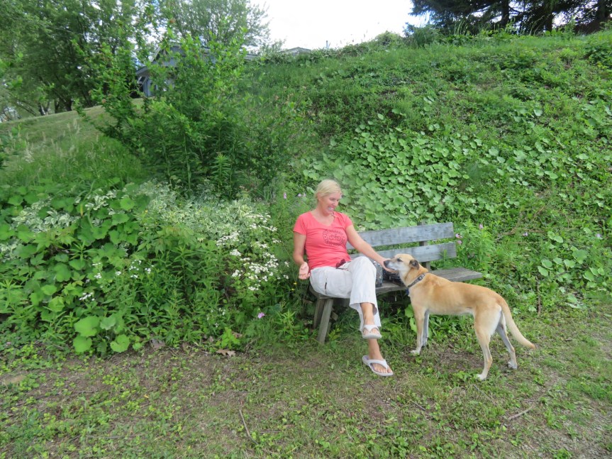 We arrived at Lakeside Campground in Ripley, NY without getting groceries. The dogs had hot dogs and cheese with their kibble for dinner. The girl at the RV park tried to micromanage the parking of the motorhome. The spot she had for us is adjacent to the family home. She wanted me to park out of level as close to the road as possible. I backed in a little further bringing it nicely level without any legos and a bit further out of the entrance lane.