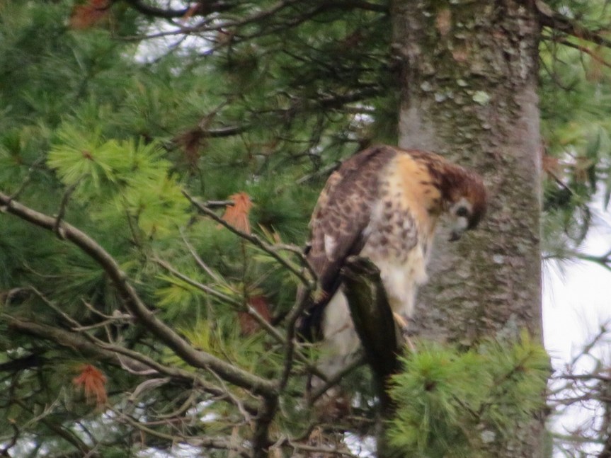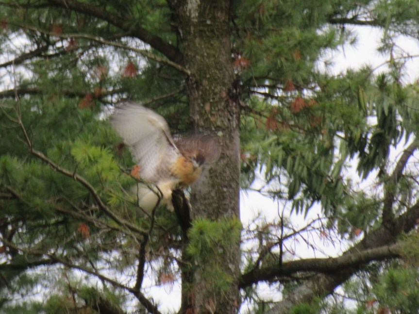 Cali was squirrelly at 5:30 this morning and PJ got up to take her outside. I tried to stay asleep but it wasn’t happening. We were all awake, so we got up and decided to take a hike down by the lakes. The hawks were out by their nests tending to their young ones. PJ got a couple of pictures while I was still trying to force some shut eye.