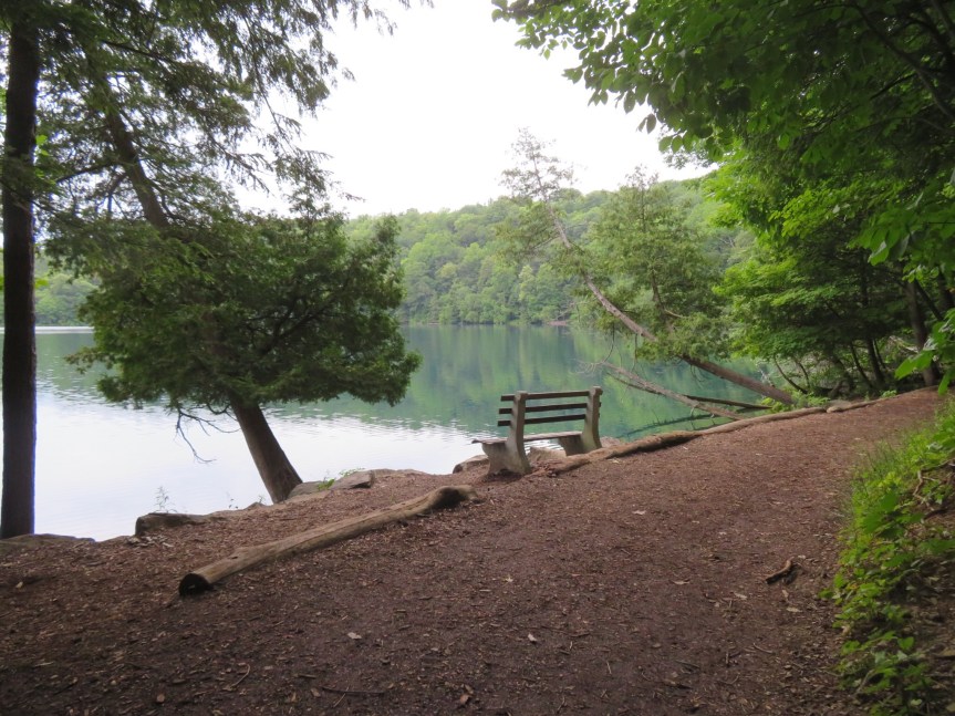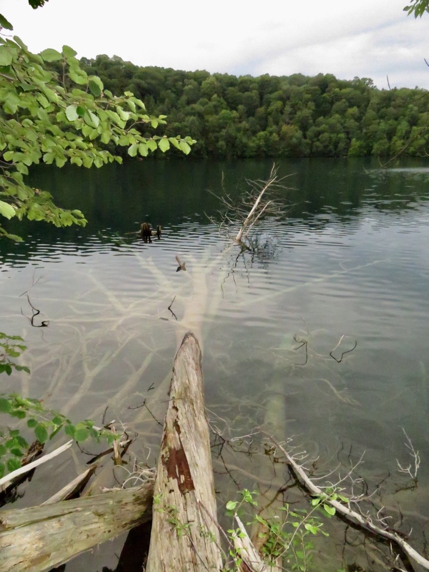 The lake was as blue-green as it was yesterday only more outstanding in the early morning sun. We walked around Round Lake first sitting for a time on a bench in quiet contemplation. We then took the short trail over to Green Lake and walked the almost two miles around that lake. There were quite a few joggers out taking advantage of the nicely groomed trails to run on.