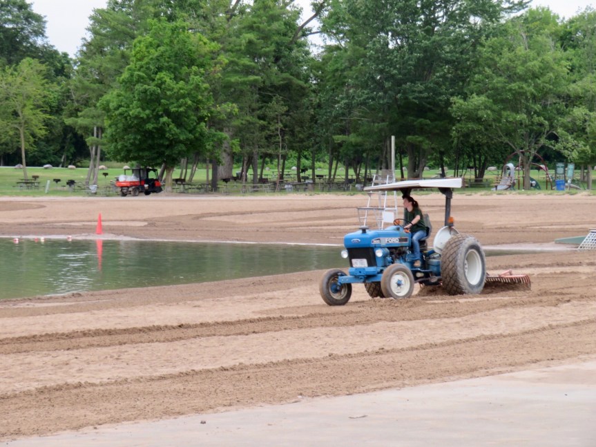 Around the far end of the lake from the campground, there was a large groomed beach with concession stands and places to rent boats. The crews were out in force getting everything in tip top shape for the upcoming Fourth of July weekend.