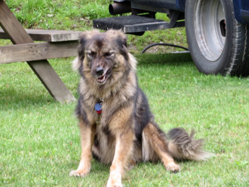 Back at camp, PJ took a nap while I typed up a small post for yesterday. Had some tea, then roused everyone for breakfast then packed up our camp and prepared to hit the road. I decided to try the old RVer’s trick of putting ice cubes and borax in the black water tank to scrub it up. Added the borax and some Dawn detergent after dumping, then bought two bags of ice at the camp store and threw them in. We’ll see what happens.