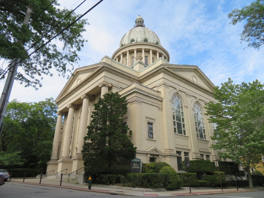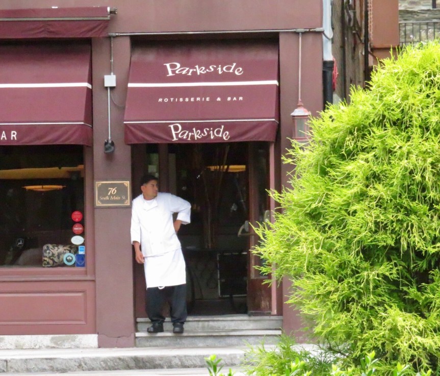 We went into the artsy commercial area filled with cafes, restaurants and pubs catering to the student population. Deciding on a mug of tea to celebrate marking 32 years of continuous sobriety for me today, we hung out a while in Tealuxe, a hip little cafe and watched the mixture of bohemian kids, local residents and homeless folk walk past the large glass windows. After finishing our chai and biscotti, we hiked up Prospect Street past the stately homes, many built in the 1700s. We poked our heads into the Rhode Island School of Design, but their exhibits were being redone and the gallery section was closed today.