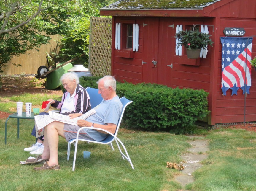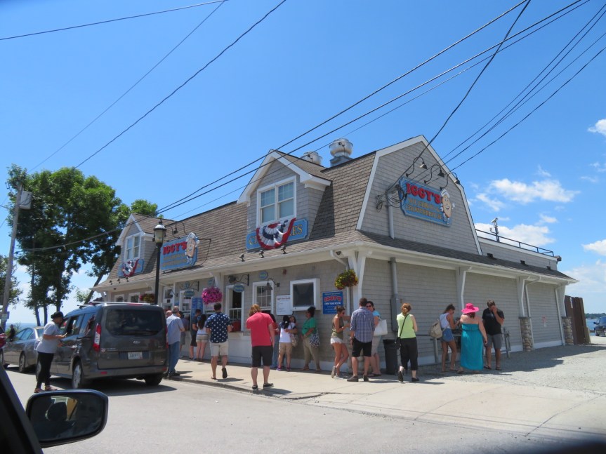 We went for a drive around the local beaches and had a look around. Big crowds and lots going on. If clam cakes were on your agenda, be prepared for a wait in line. The weather was beautiful and people were out in force. We returned home, barbecued and watched the neighborhood displays.