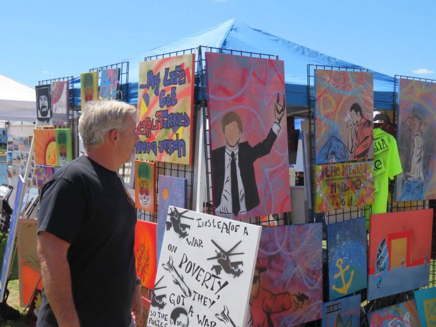 There were numerous vendors with the usual stalls of home made jewelry, artsy t-shirts and different decorative items and antiques. A busker was playing folksy music and a decent sized assemblage of people were loitering around the park.
