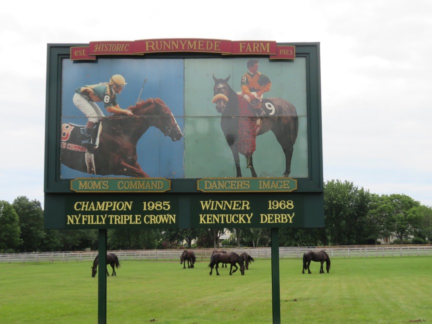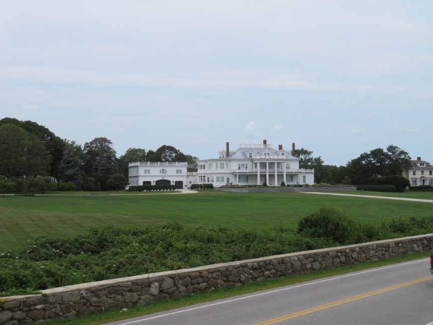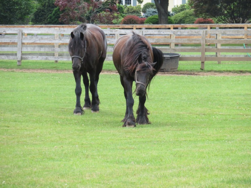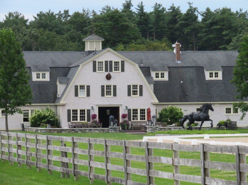 As noon approached, we saddled up the bikes with our beach gear and set out on the five mile ride down to the beach. Atlantic Ave. was a beautiful stretch of road lined with big trees with large fancy homes tucked in among them. From quaint eighteenth century estates to modern McMansions, the scenery was spectacular. PJ was bedazzled by a pasture full of thoroughbred stallions so we stopped along the short stone wall and watched them graze.
