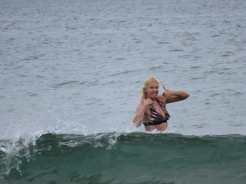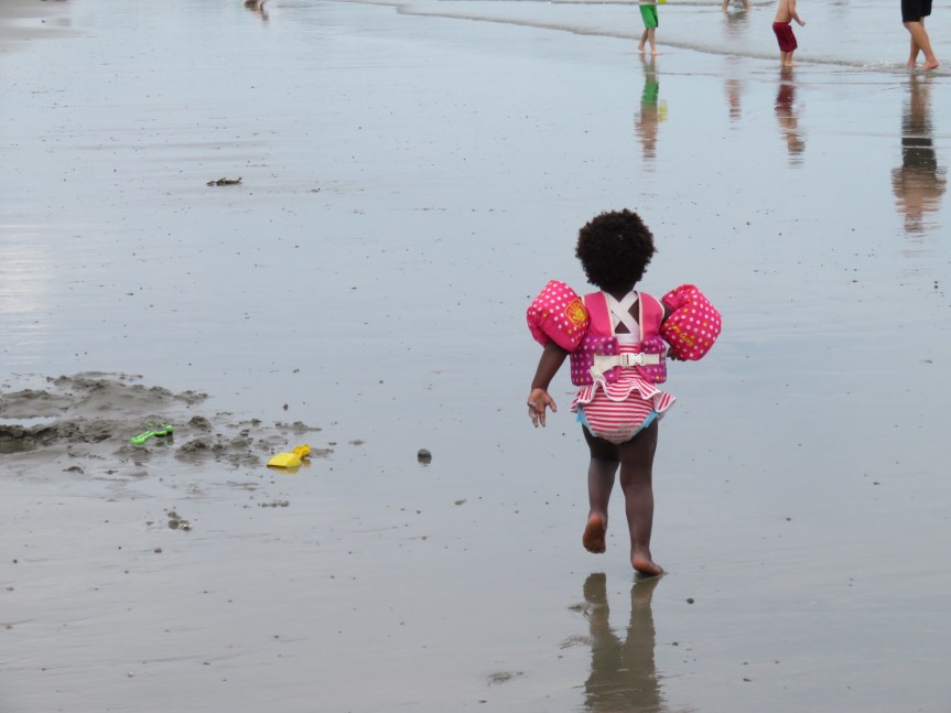 We reached Jenness and I sat around on a bench while PJ lounged around on a large flat boulder. Although the waves were minuscule, there was quite a crowd out bobbing around in the shallows. There was one particular crew of kids doing some kind of camp. They were small enough that the waves were rideable for them and they were having a blast.