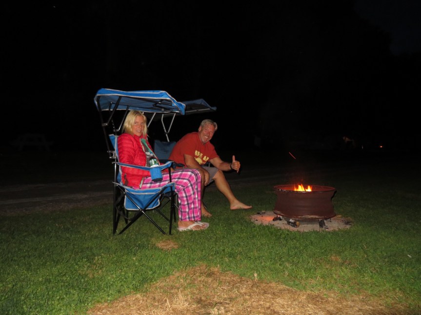 Freed the pups and hung around outside under the awning. Soon, Frank came puttering by in his smelly little diesel cart and I bought a small stack of logs for us to have a camp fire. Nice easy day at the beach.