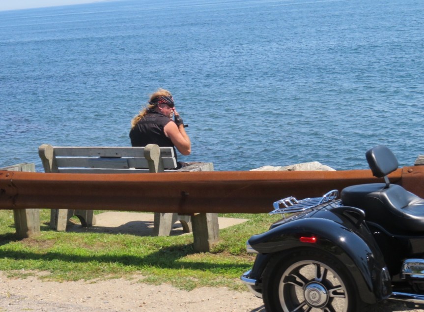 Our first stop was directly across the street at the lawn mower emporium where we hunted down a young man to fill our propane tank. Justin topped us up with 6.5 liters and we rolled a few more miles down to the Shaw’s grocery store. After reloading the cupboards, we backtracked down Atlantic Ave. to the coast highway we rode our bikes on the other day.