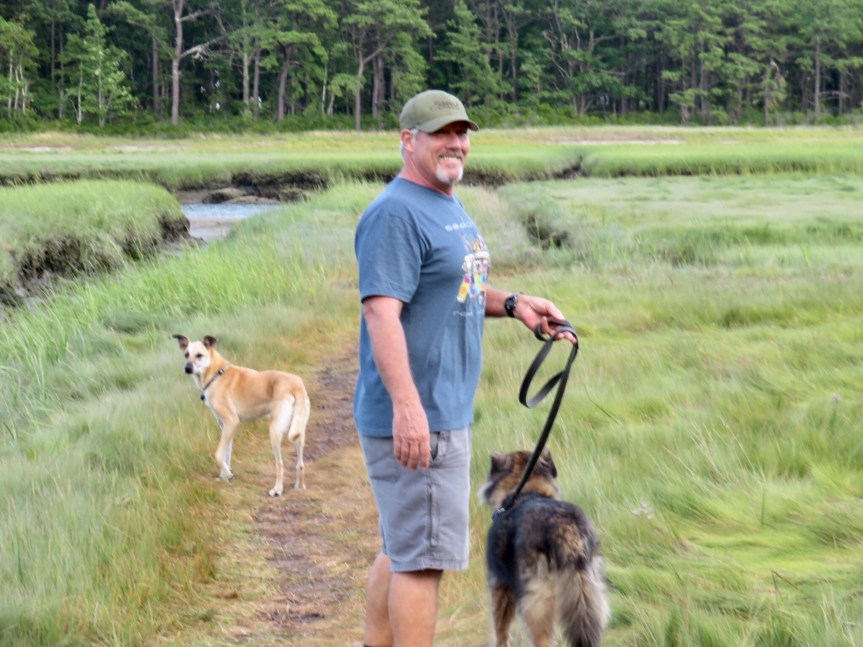 We had missed lunch, so we ate an early dinner then took a hike down to the salt marsh and sloshed around in the muddy reeds along the bank. We were hoping to find a trail to the beach, but were disappointed. Koda is a big fan of wetness and mud, though, so she was stoked with the afternoon’s trek.