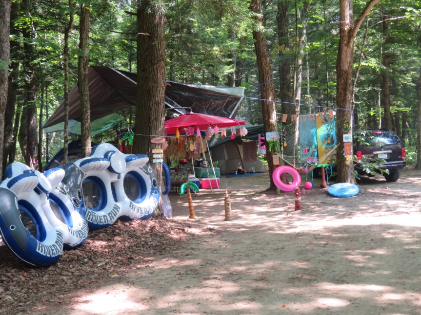 We slowly got our wagon repacked. I took the dogs down to the river and let them get into the cool water. The parrotheads were beginning to stir and by mid morning the blenders were churning out margaritas. The gun shots at the gun club opened fire and the stereos got to pumping out the tunes.