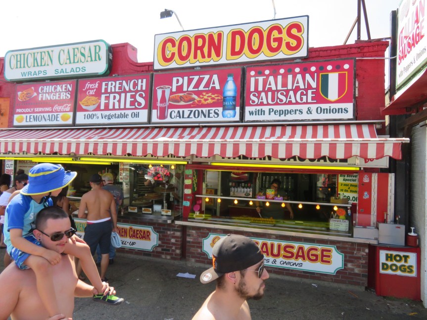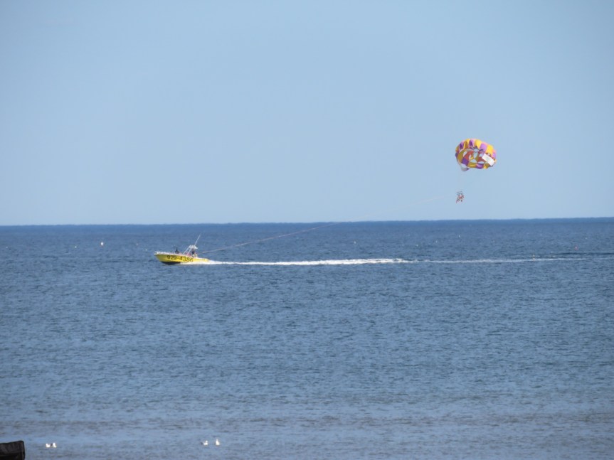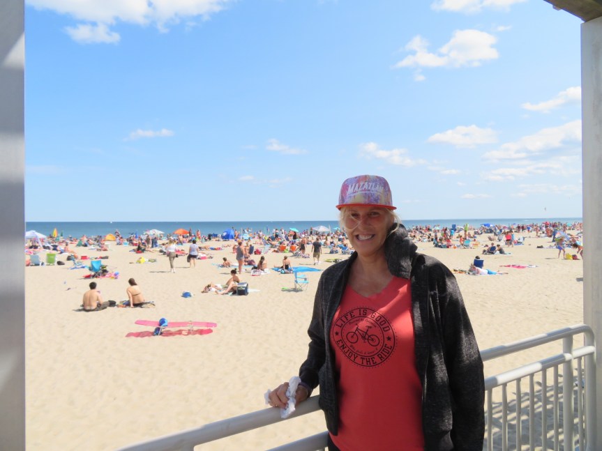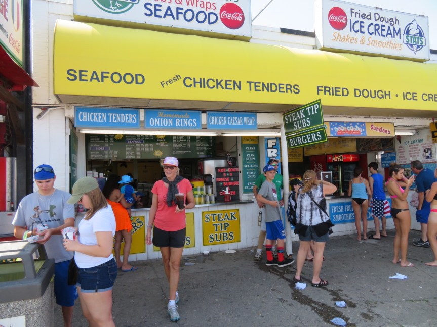 At the band shell, there was a singing contest going on karaoke style with a $1000 prize. We listened to a couple of contestants then walked across the beach highway and got righteous overcharged for a crappy burger and fries. They get you on the drinks which aren’t listed on the menu but when I was baffled by the price, I asked for a receipt and was astounded at the cost. Oh well, getting burned once on the carney strip won’t kill me. We took our food back over to the bandstand where they had benches in the shade and ate our lunch listening to a few more songs.