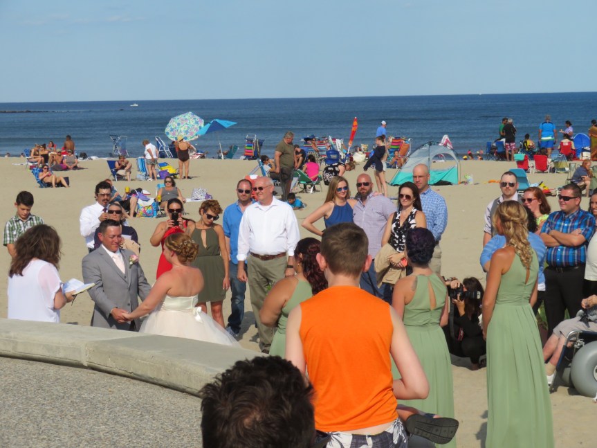We walked back along the beach front and came upon a couple getting married on the sand in front of the war memorial. A large crowd of beach goers was congregating along with the invited guests. The whole throng broke out in applause when they were proclaimed man and wife.