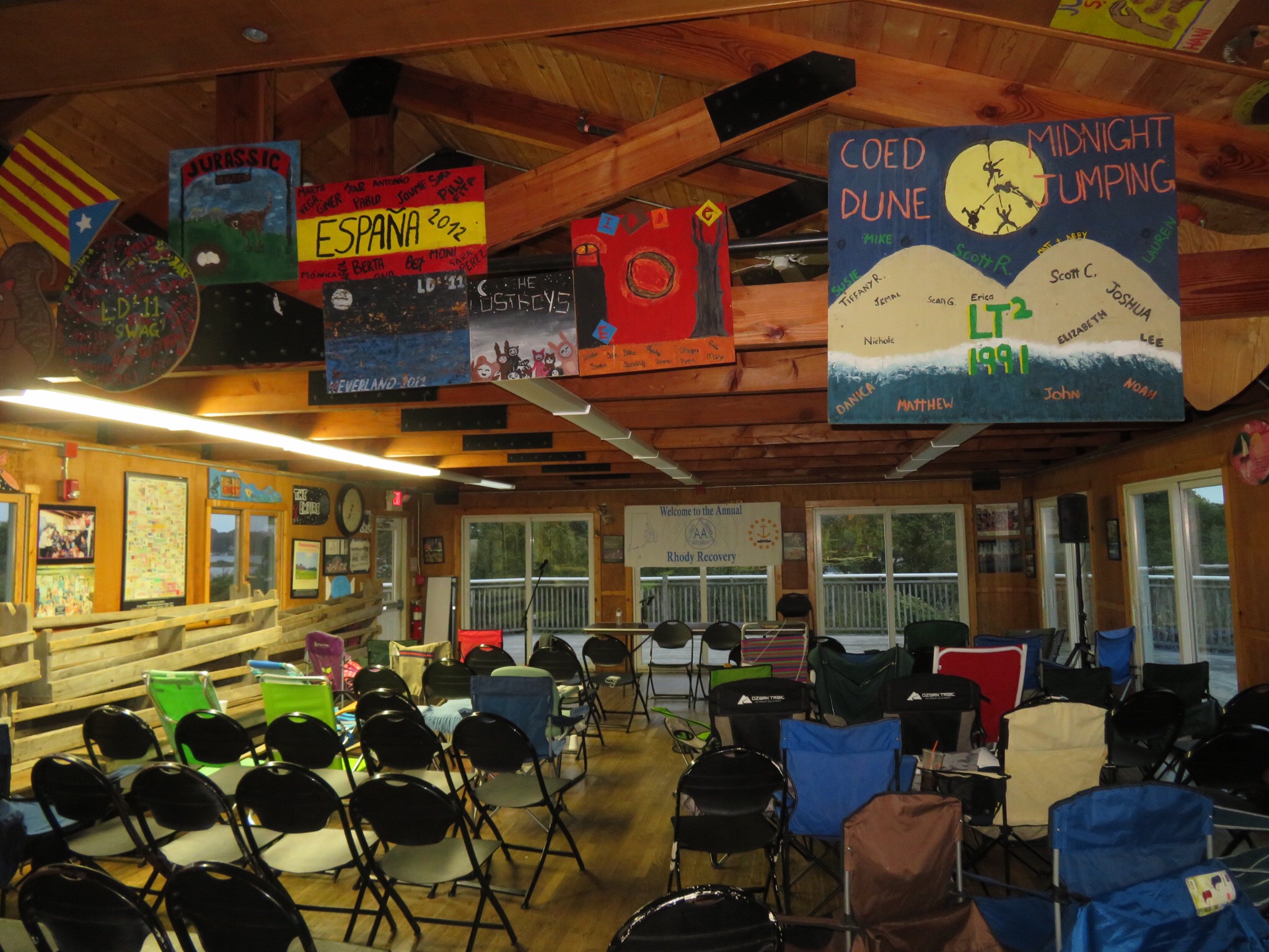 On Friday, we made the spur of the moment decision to attend an AA weekend retreat down near Point Judith. It had been announced daily at our usual ten o’clock meeting at Pilgrim Church and we figured why not just pack up Lexi and go for a quick getaway down to the YMCA camp along the southern shore. It was a grey, rainy morning as we were walking home from the meeting finalizing the plan.
