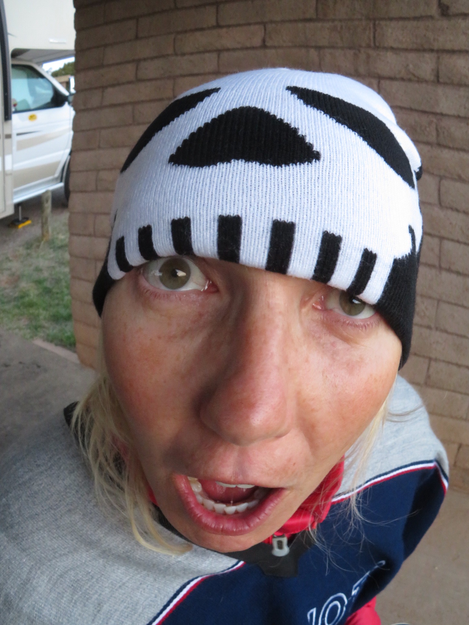 PJ braved the camp facilities for an after dark shower while I put together something to eat. Quiet night in the camp reading and going online.