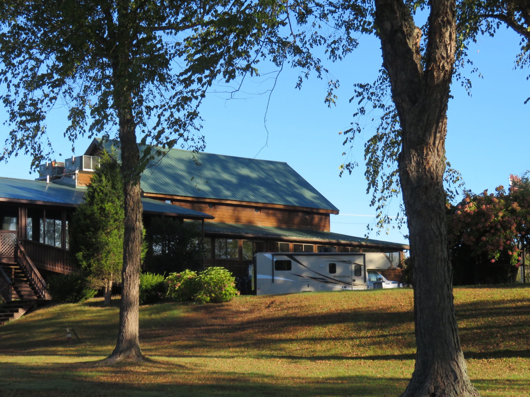 The mist on the river almost obscured the geese that were swimming across the water. Koda played with another dog on the lawn area along the banks while I sipped a hot cup of tea as I chatted with the owner, a retiree from Iowa. Wilson stood alone alongside the large red restaurant. One of the rear tires looked a little low, so I tried checkIng them with my gauge. I couldn’t find the valve for the inside dually. I finally located it sitting loose vertically between the two tires. I pulled it down and the pressure was slightly low. When I went to inflate it with the compressor, the air wouldn’t flow in. I left it for the moment and we got everything stowed and headed down the highway.