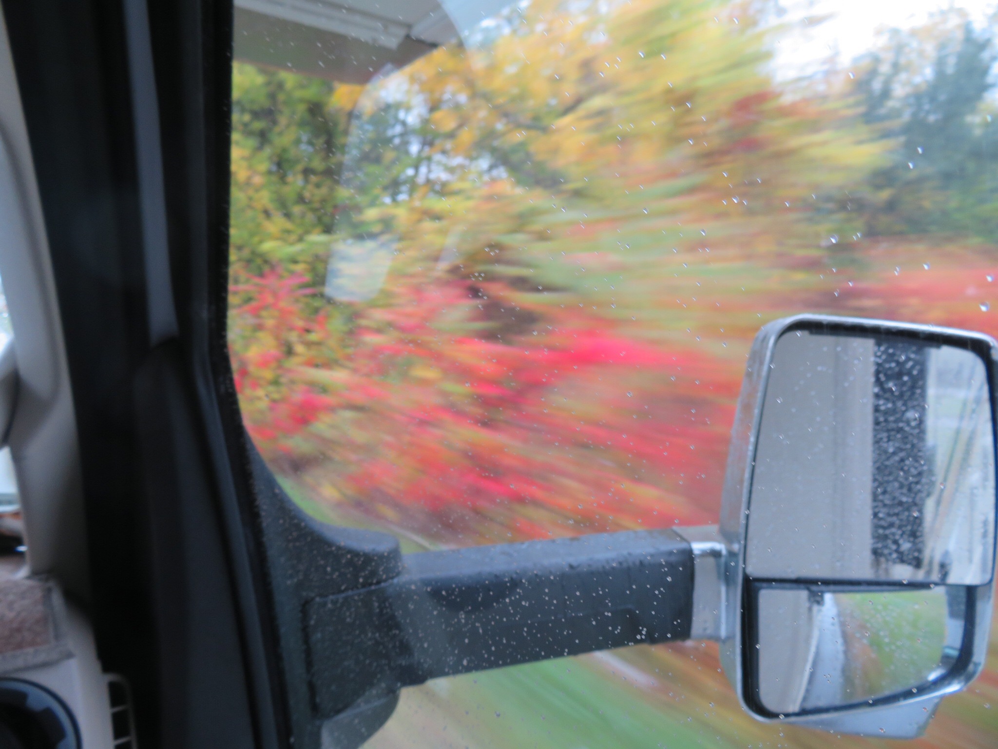 Rain is relentless. The one basement bay has a bit of water in it. We’ll wait until we get the RV registered and slow our pace then contact a dealer and get the seal repositioned. That and the swivel knob to secure the shower door while driving are the only warranty items we’ve identified to fix and it didn’t really seem worth it to drive the extra 500 miles to have it done at Winnebago. The real deciding factor is the weather in the 40s daytime and 30s nighttime in Iowa. So we are going to veer south and head for warmer climes and to make better time heading home.