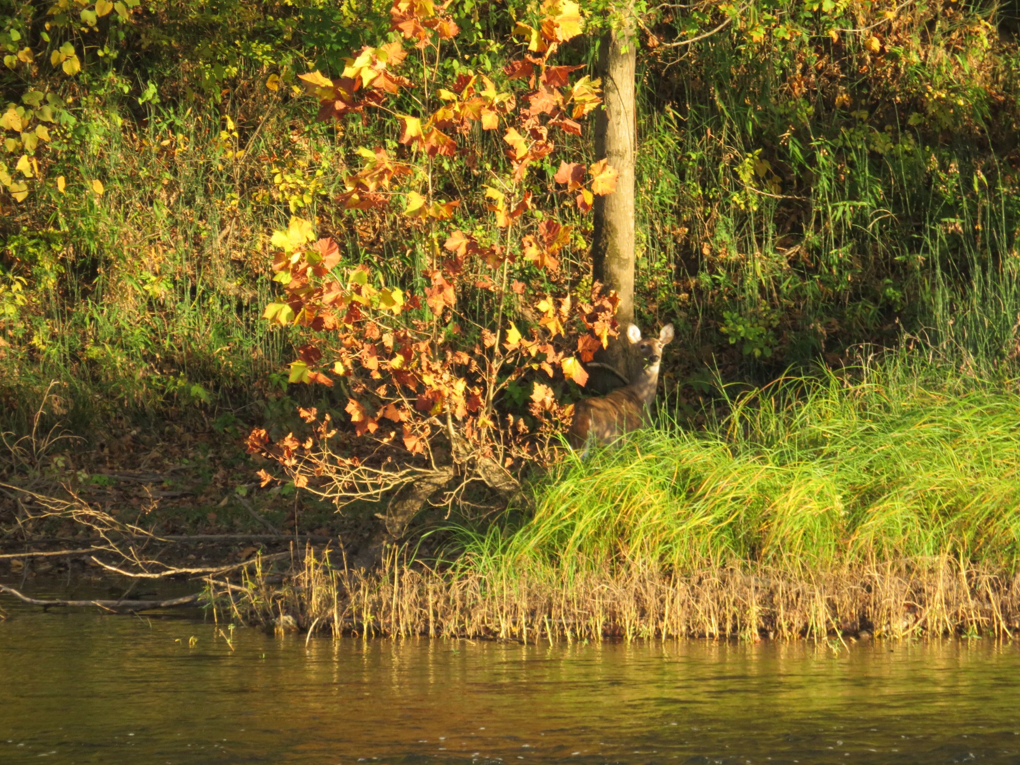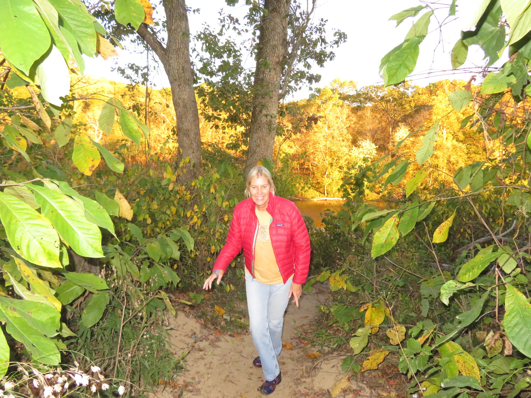 We got camp set up and were shaking off our irritable moods. We hopped on the bikes and rode them down to the end of the camp where the swimming area is. A little too cold for a dip today but we walked around the shore and enjoyed the beauty and quiet of an eerily deserted state park. A deer came down to the water for a drink and the sun played games with the shadows as the evening began to darken.