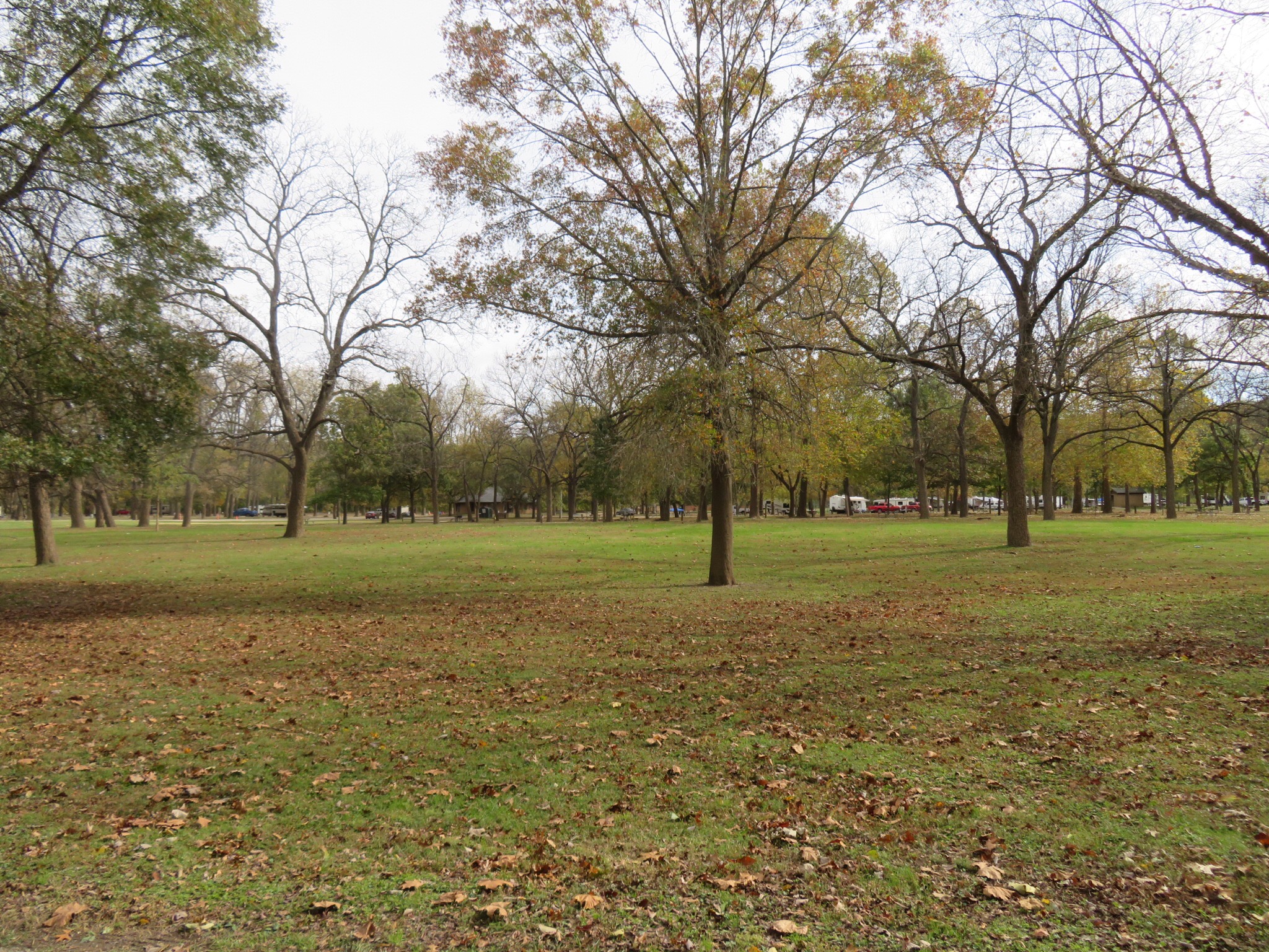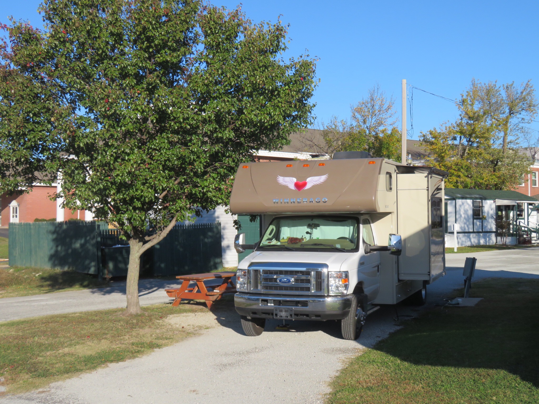 There was a KOA right off the highway in Joplin that we figured would do for one night but when we exited, there were panhandlers on every corner and the campground was nestled in between two busy truck stops just feet away from the interstate. We gassed up and kept moving, stopping a little farther down the line in the town of Miami just across the Oklahoma border. Kind of out in the open on a big grass lawn area but quiet enough and safe.