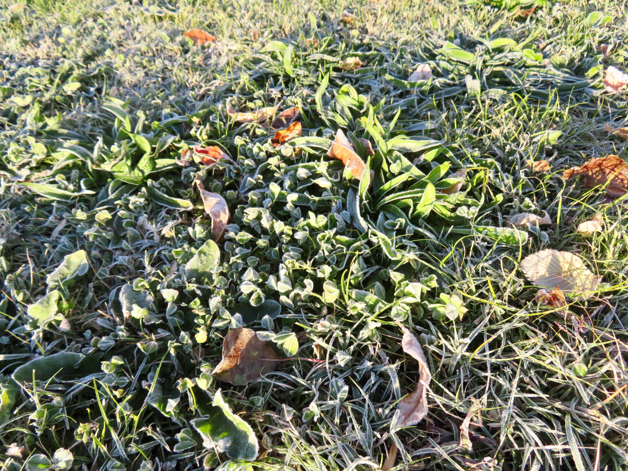 Slept pretty decently then got up to 30 degrees on the thermometer and frost on the ground. I took the pups for a stroll, but Cali was definitely not into the winter wonderland thing.