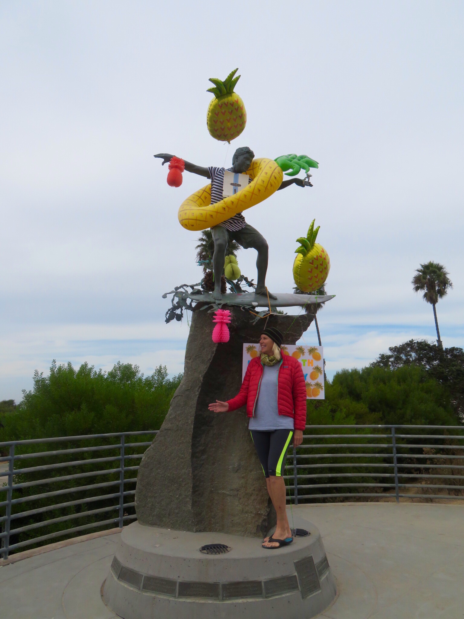 PJ was up early getting the dogs ready for a vet appointment up in Carlsbad. As she was making coffee, the phone rang and it was the vet’s office cancelling because the veterinarian is sick today. We changed course and started the morning with a walk around the campground. Some entrepreneurial little girls were selling some rocks that they had painted in colorful patterns. We purchased the finest of the lot for an exorbitant 25 cents as our contribution to the arts scene in Encinitas.