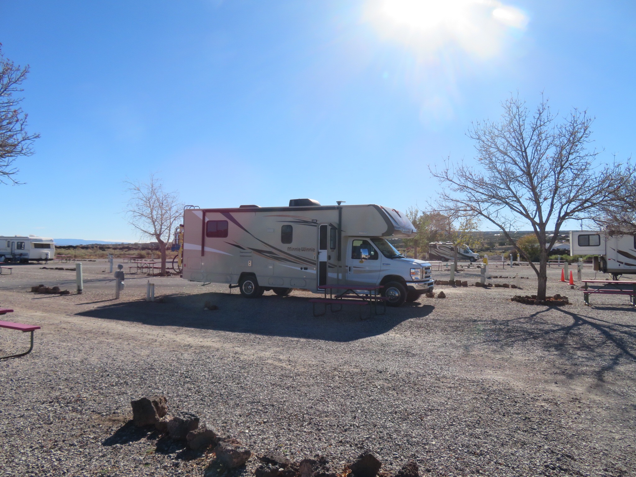 We covered a couple hundred miles then happily pulled into a clean little campground in Grants NM. The owners were super accommodating and friendly. We parked up on a long pull through gravelly spot and leveled up. Walked the dogs and took a short nap. We did some reading and relaxing while watching other weary travelers arriving for the night.