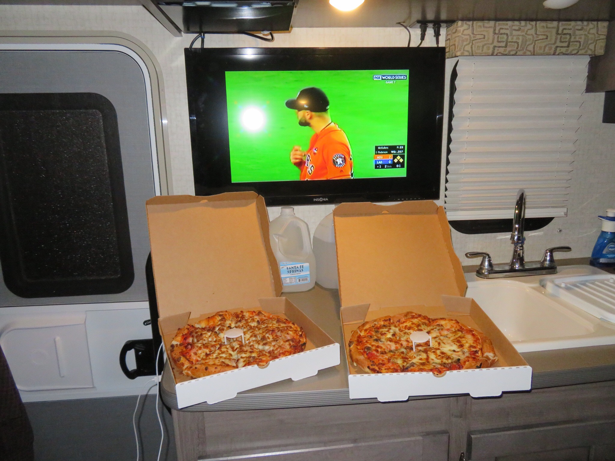 The cable was good and we called Surf Shack Pizza and ordered a couple of medium pies to eat while we watched the Houston Astros win the World Series. One of the better World Series playoffs in some time. An easy quiet night with the wind calming down.
