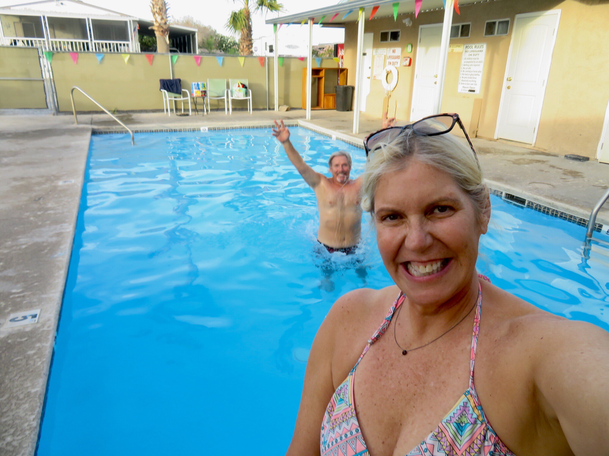 Stuck in Needles. Still laying low and completely relaxing in Needles. Yes, that’s Needles. We’ve been making some plans and reserving some spots online while slipping out to the pool for the occasional swim. We have an appointment out at Slab City on Tuesday to get a few solar panels installed so we are kind of hovering out in the desert until then.