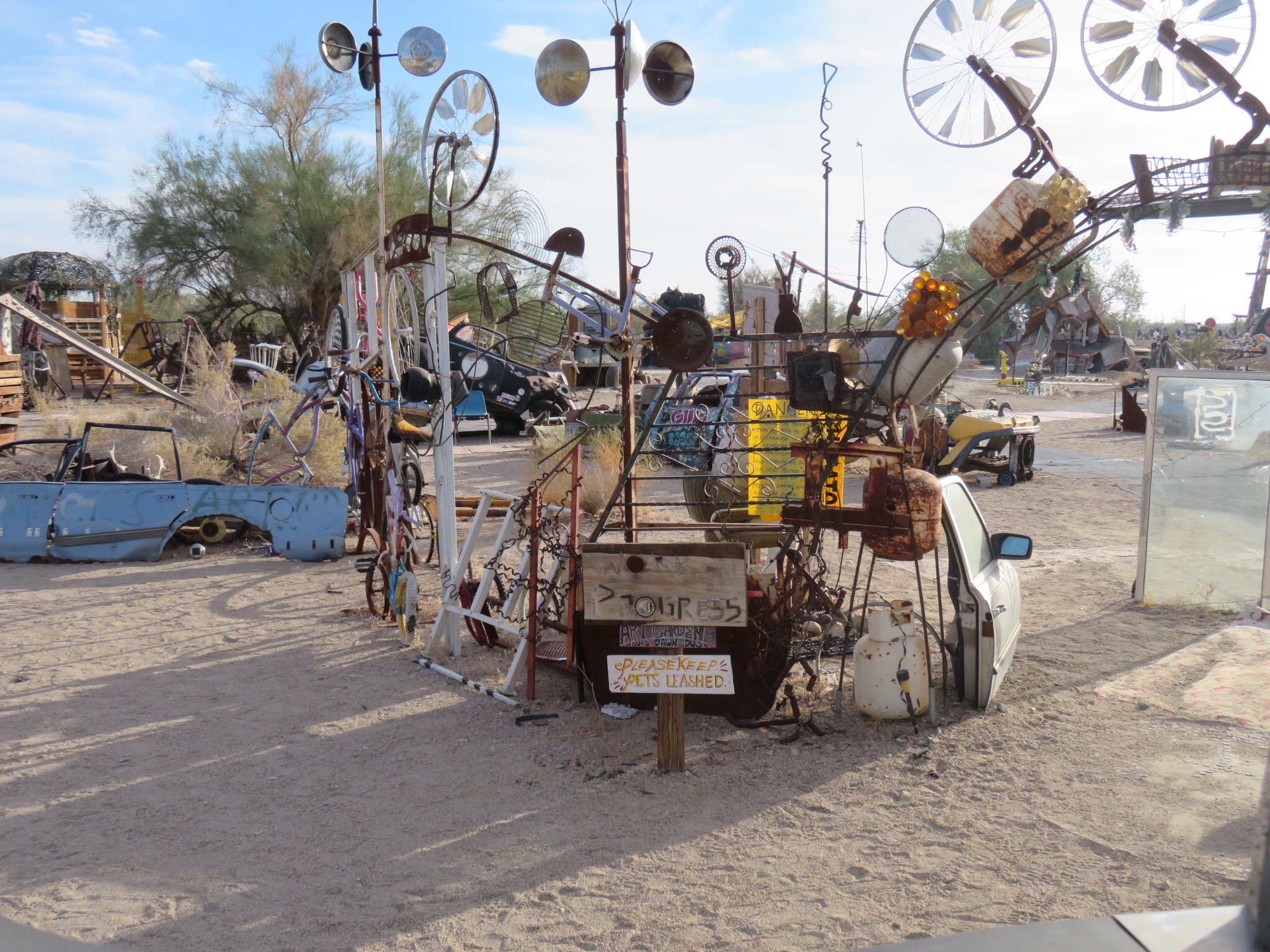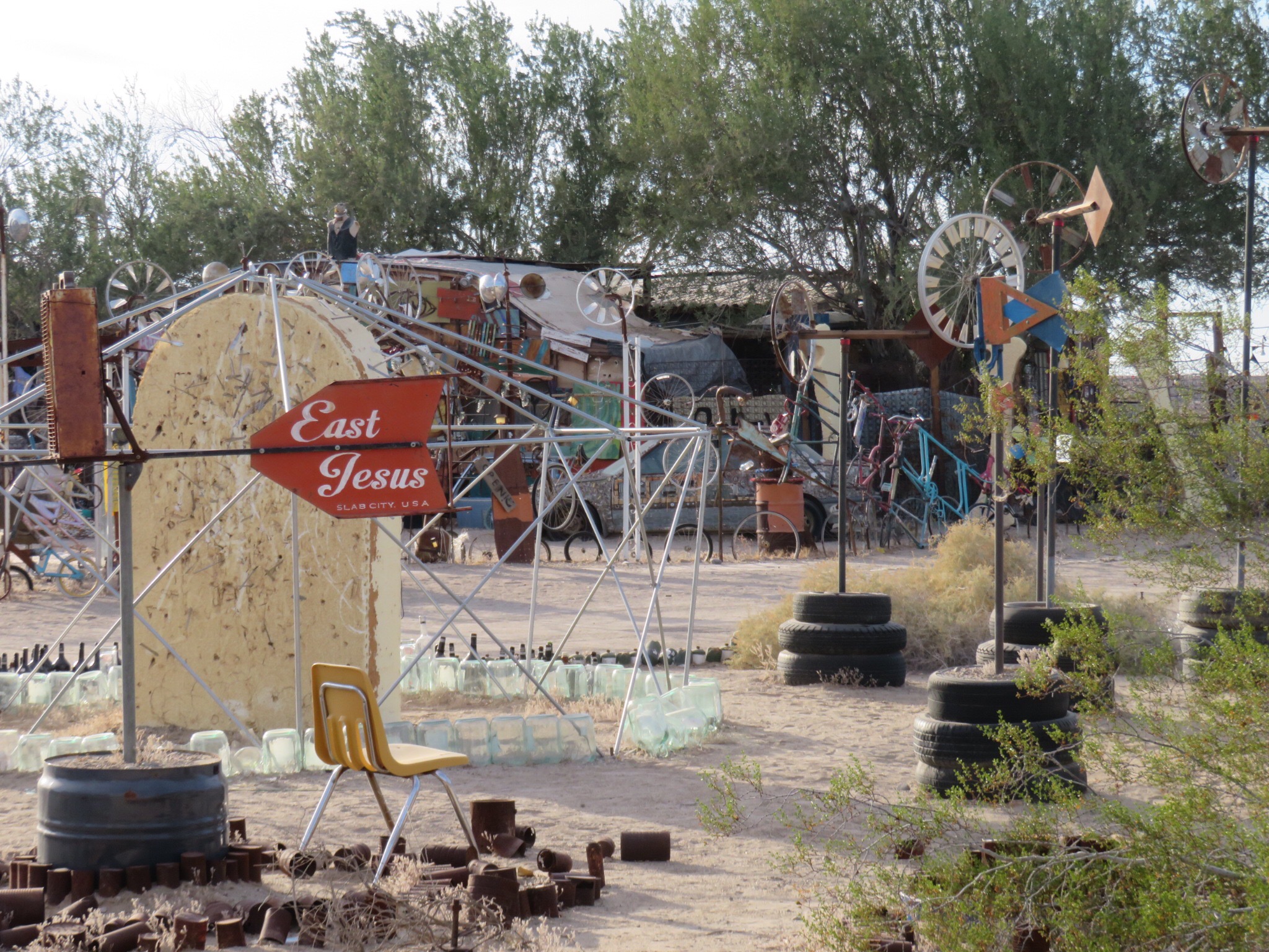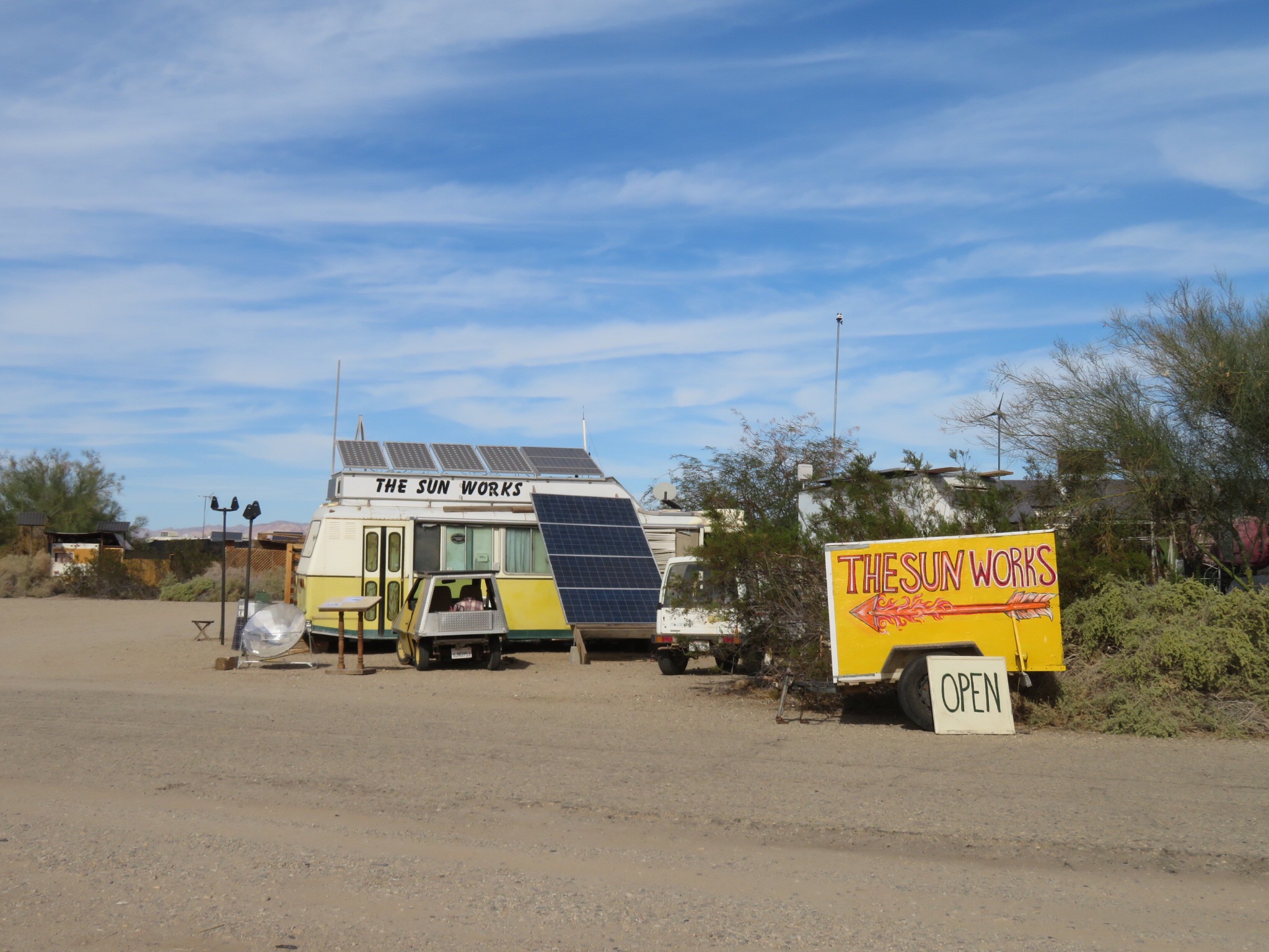 Around 2:30 everything was buttoned up and working as advertised. I thanked the crew, then went into Mike’s bus headquarters to settle up the bill. Then we loaded up the girls and drove over to East Jesus to have a quick peek at the art project over there. We were a little tired and dirty by then so we more or less just did a quick drive by only stopping briefly.