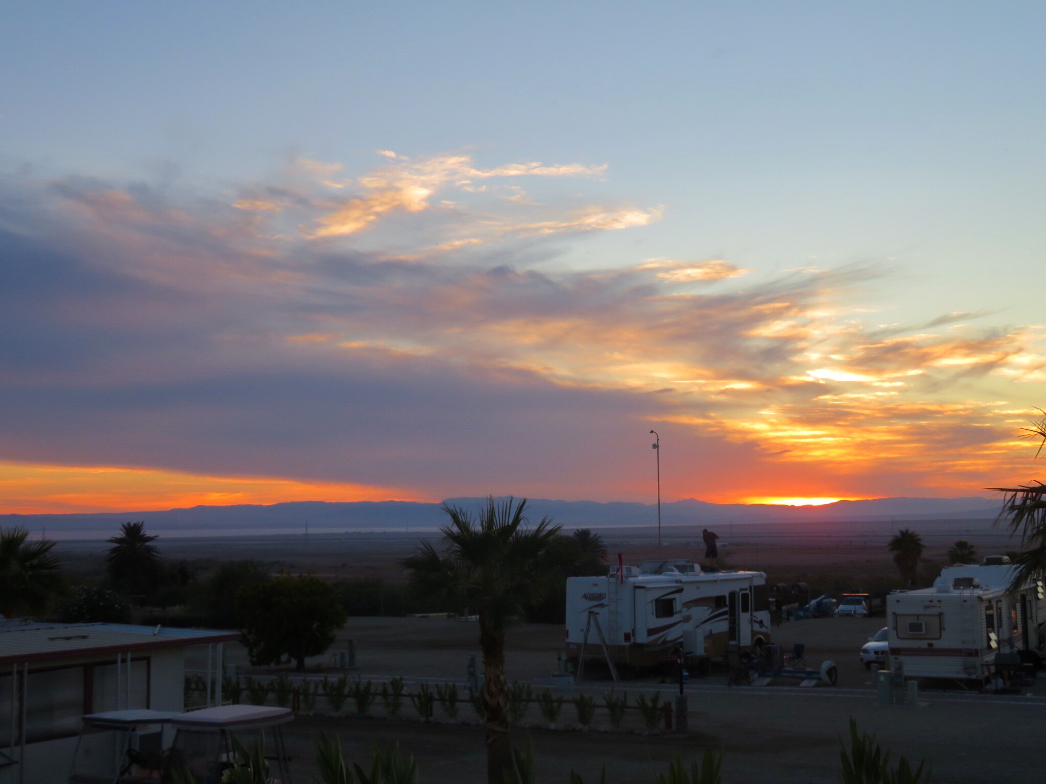 The day was drawing to a close so we decided to roll back over to the Fountain of Youth. No offense to the slabs, but we wanted showers after our day in the dirt. We got slotted into a spot away from the neighbors with a little patio as the sun disappeared behind the lake. We ate some salads, then went for a long stroll through the compound. We returned to the RV, tucked the dogs in for the night then went to soak in the mineral spa. After a soak and a shower we were ready for sleep.