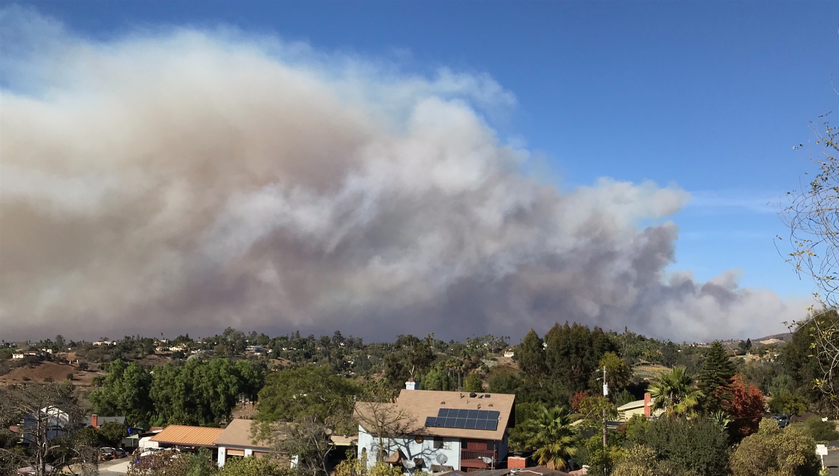 PJ took off to attend a women’s meeting over in Carlsbad and I settled in on the couch to watch the football game and follow the news of the fire. It dominated all of the local stations and it preempted any other programming. By the time PJ got home, the fire had grown to over 4000 acres and at 10:00 there was a mandatory evacuation for the area where we had been camping at Guajome. Glad we got of there early and weren’t scrambling around in the dark. Got comfortable in our new neighborhood and went to bed to the sound of the crashing waves.