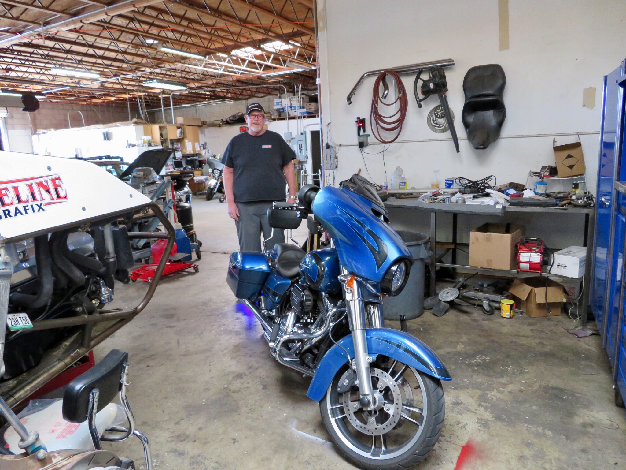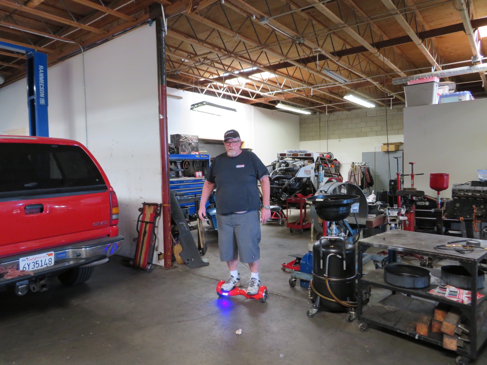Ken picked up a newer Harley to replace the old one. Pretty sharp looking with a lot of updated features. While waiting for the freon to recharge, we goofed around with his hover board. He’s got it down pretty good. Below is a video of how a senior citizen gets around on a hover board.