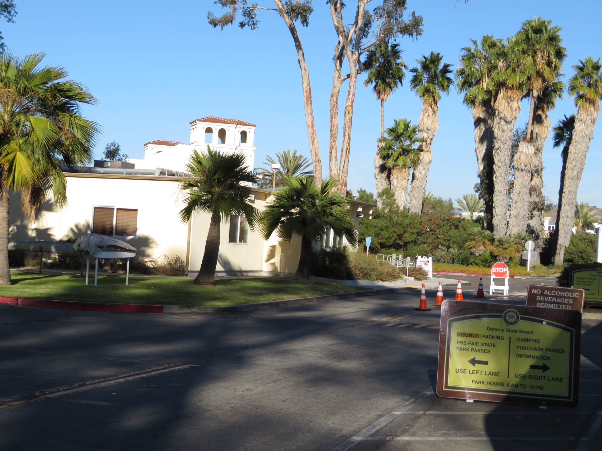 Wilson was getting a little grungy from all of his sitting around in dusty camp sites and getting ash dropped on him in Guajome, so he was overdue for a bath. I knew there was a self serve wash over on State Street, so I squeezed through the tight traffic in the village and barely fit the RV around the vacuum stations in the front to get it into the large vehicle bay on the end. The dirt flowed off and a shinier version of Wilson emerged from the grime. I had to push the extend your wash button a few times to keep the water flowing enough to finish the task. Clean and perky, we merged onto the 5 and had an uneventful drive up to Orange County. Things were a bit tight getting off onto the coast highway, but I managed to slide over to the left turn pocket and make my way into the campground.