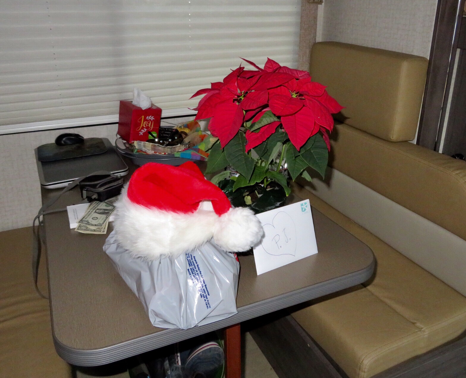 Man this was too much like work! Our only break was a late lunch that we picked up at Rubios after the second run. It was dark when we finished dropping off the last load. We spent some time relaxing and enjoying a cup of hot cider with Dad and Sandy before finishing up a load of laundry and braving the traffic back to the coast where we kicked it in the camper celebrating our anniversary with some strawberry shortcake while watching the season finale of Survivor.