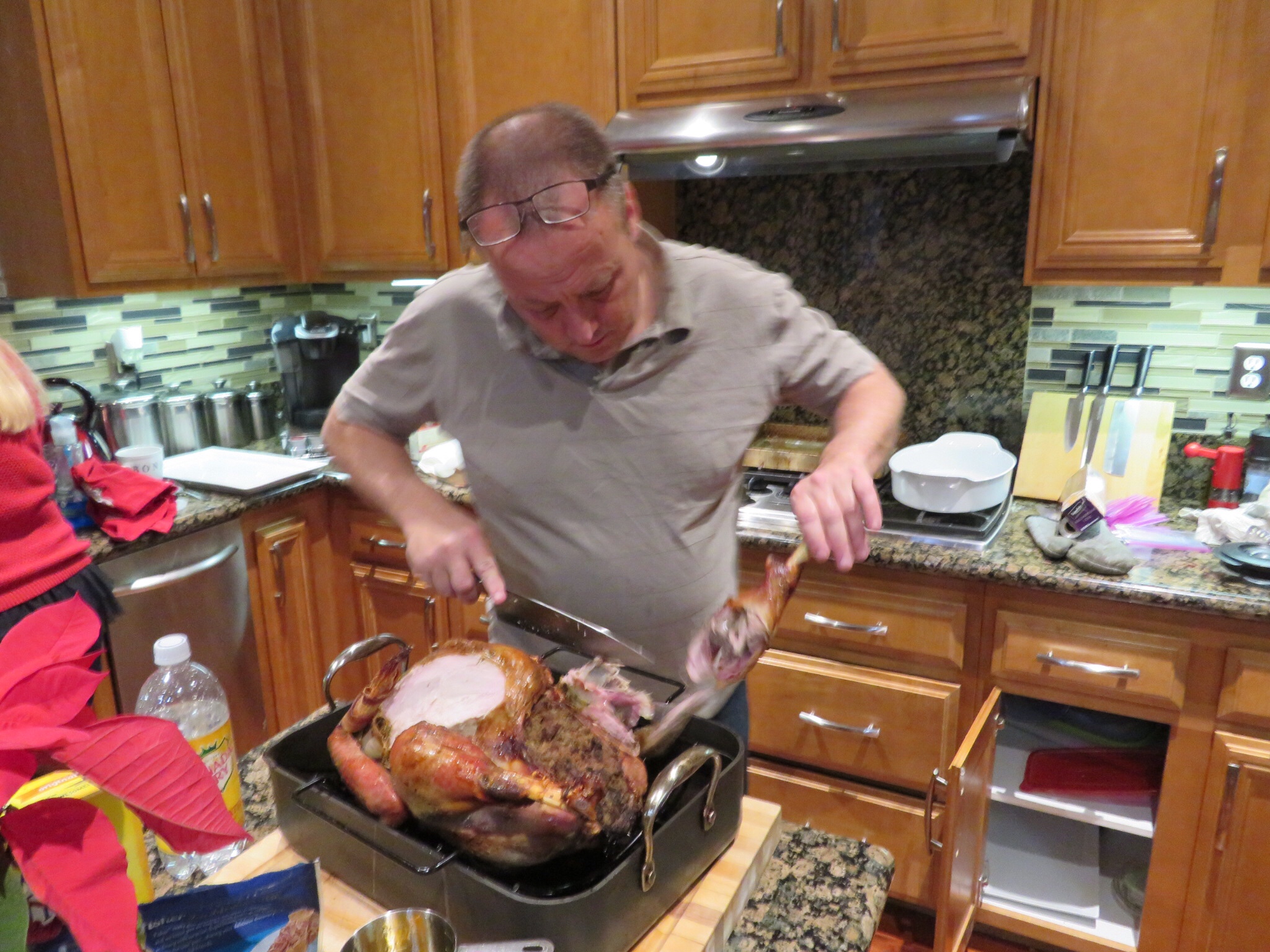 Tonight’s feast was a turkey dinner with all of the fixin’s. I sat on the oversized couch with my legs up talking to Larry and Brenda while the bird was getting tuned up. The kids were playing a card game with Florian and Yessenia while Lee put the football game on the television. We munched hors d’ouevres and chatted with Ray & Sandy between plays.