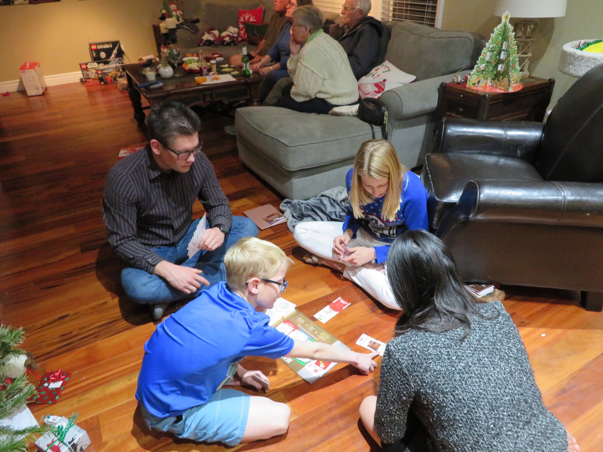 We moved to the living room to digest and open a few Christmas gifts that hadn’t yet been shared. Mostly mine, so I scored a small pile of loot to carry home with me. The kids resumed their card game and soon Devon’s home made pecan pie was served and that pushed me over the food coma edge.